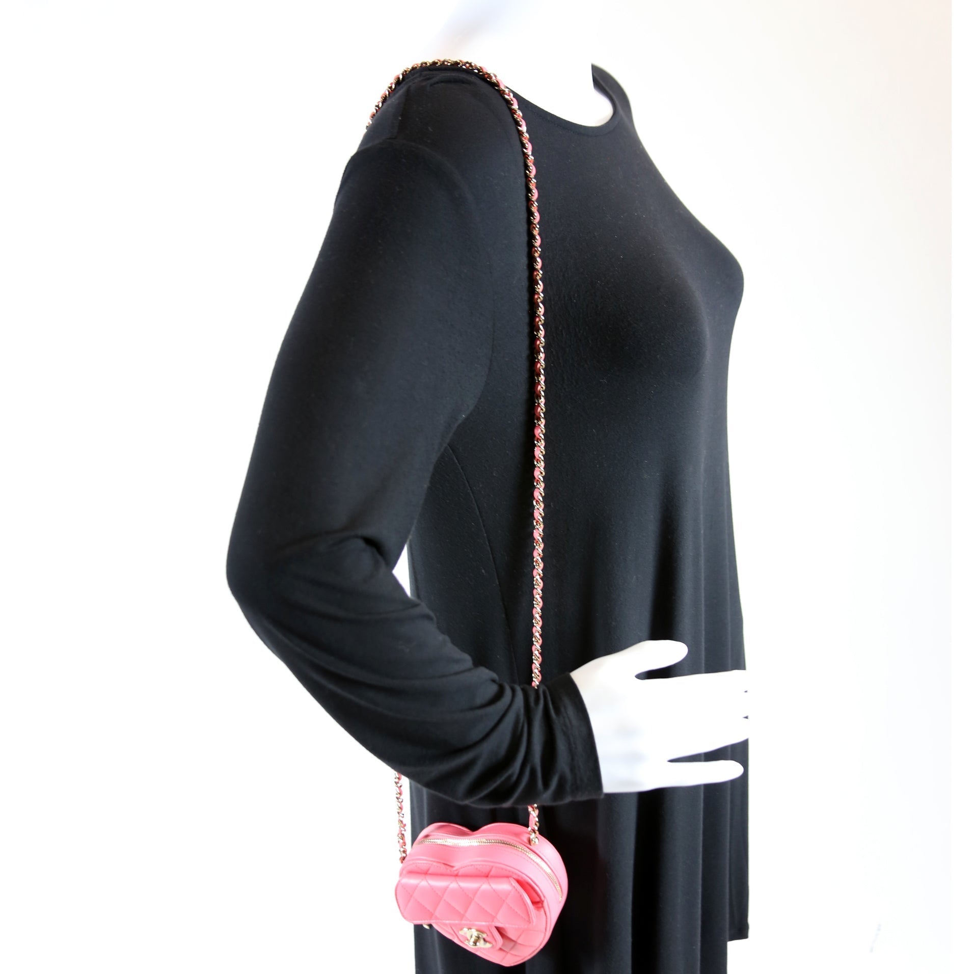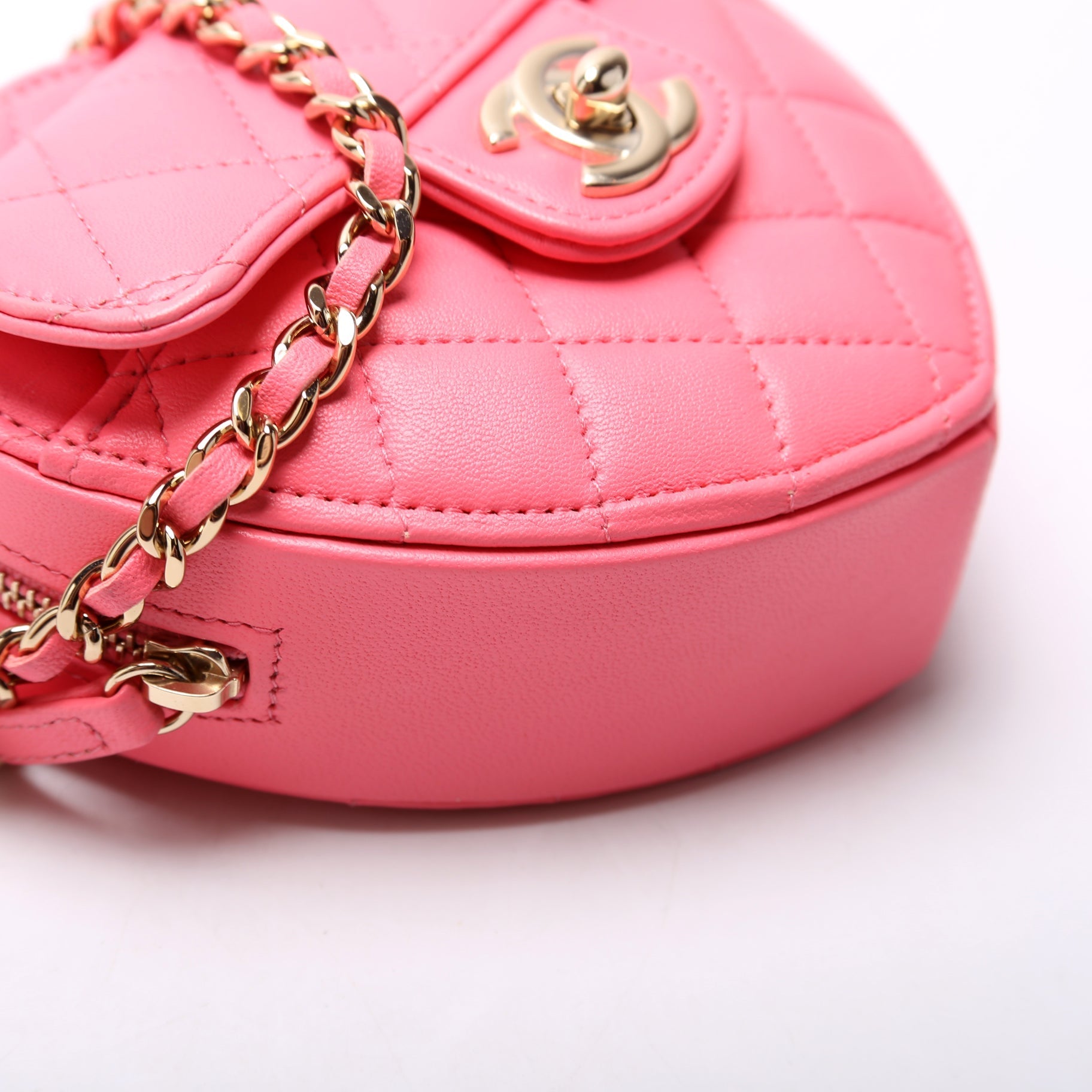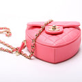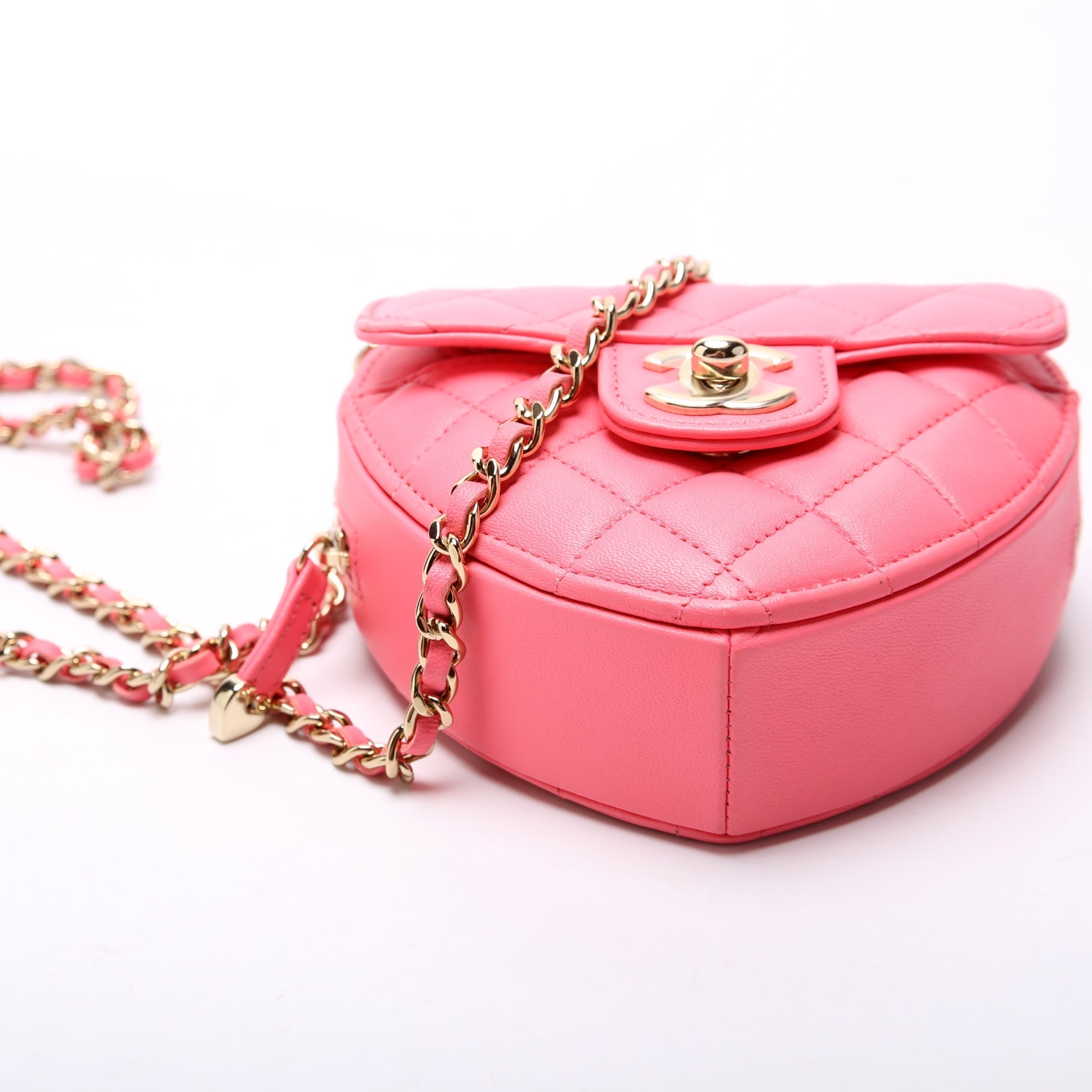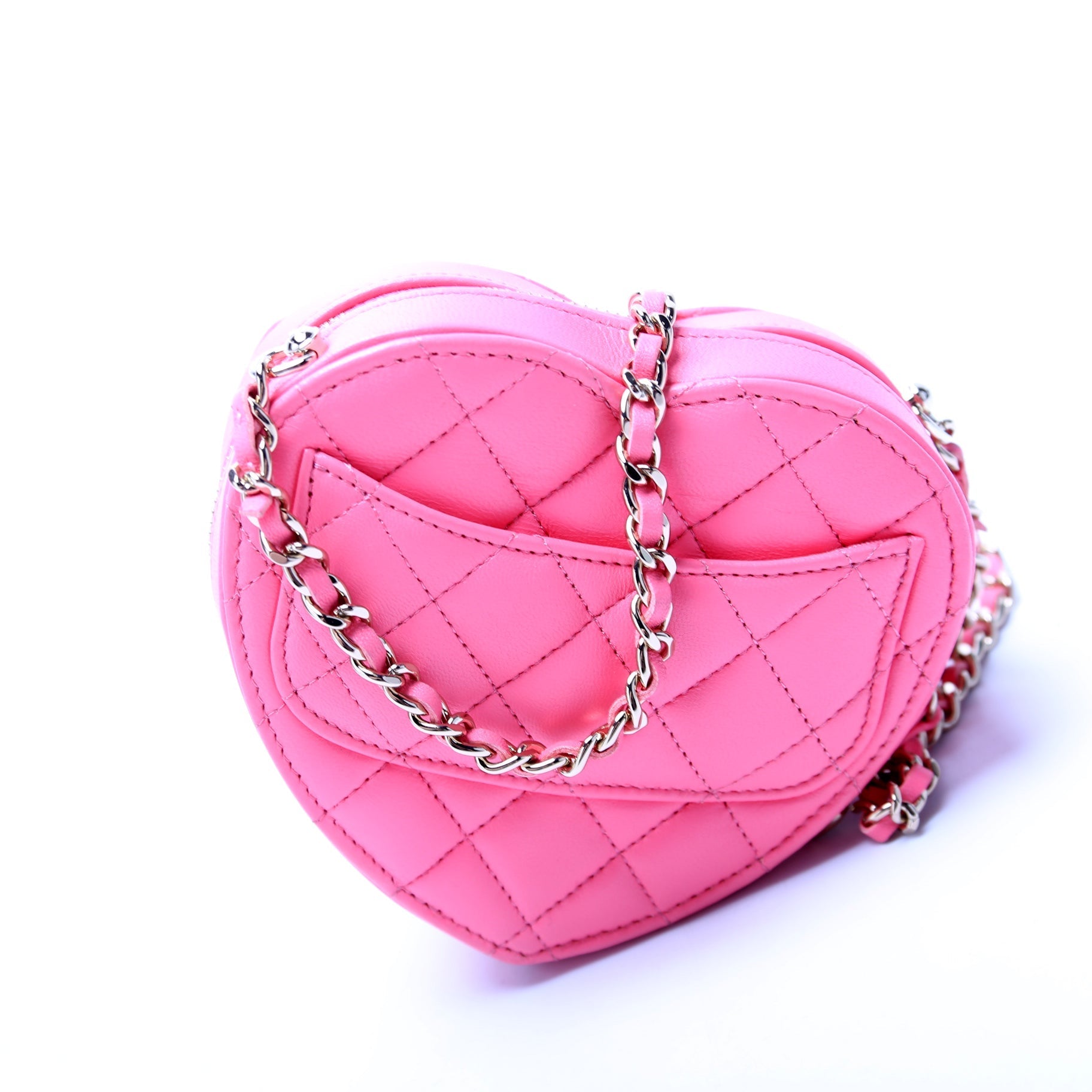 This Chanel CC In Love Heart Clutch Quilted Lambskin 32Mis eye catching bag. The exterior is in the classic Chanel Quilted Lambskin leather.