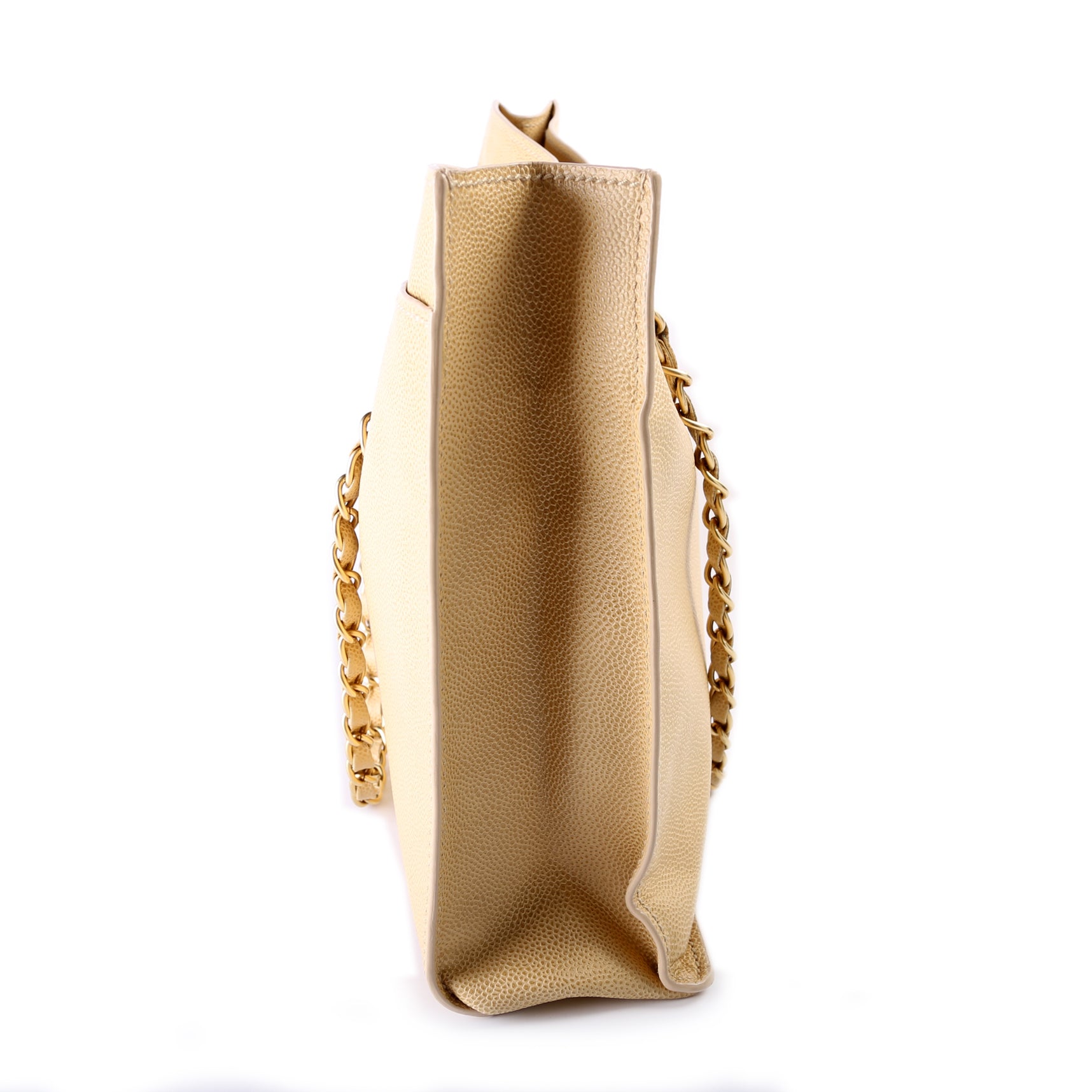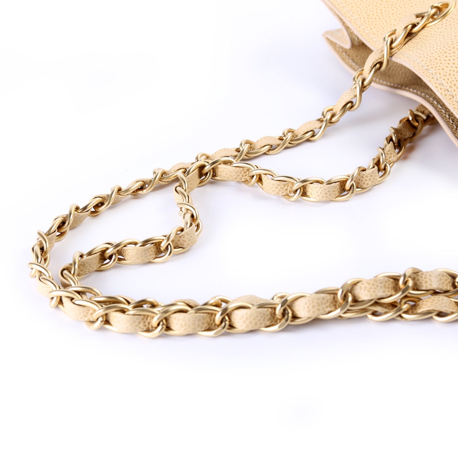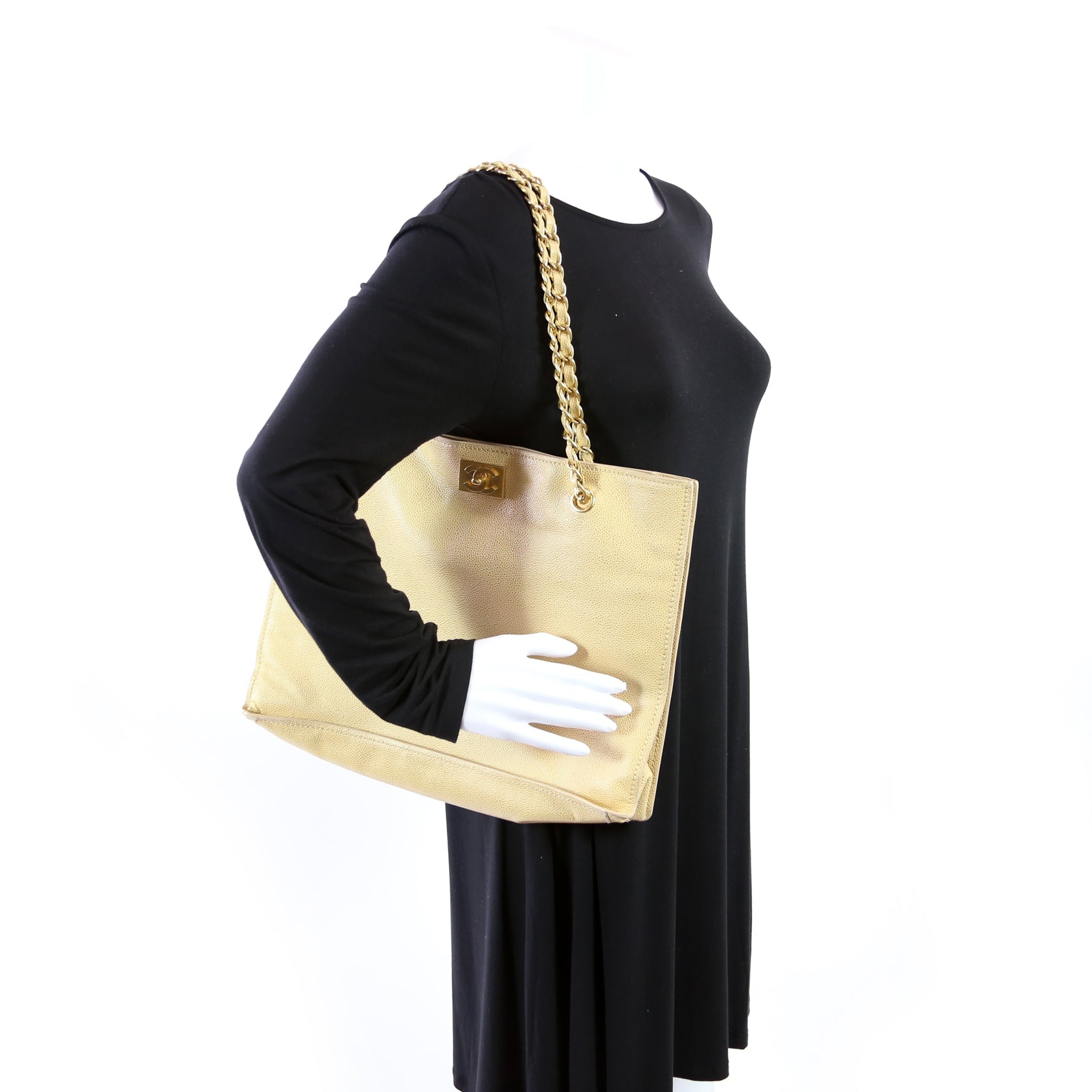 This Chanel CC Matelasse Caviar Toteis eye catching bag. The exterior is in the classic Chanel Caviar leather.