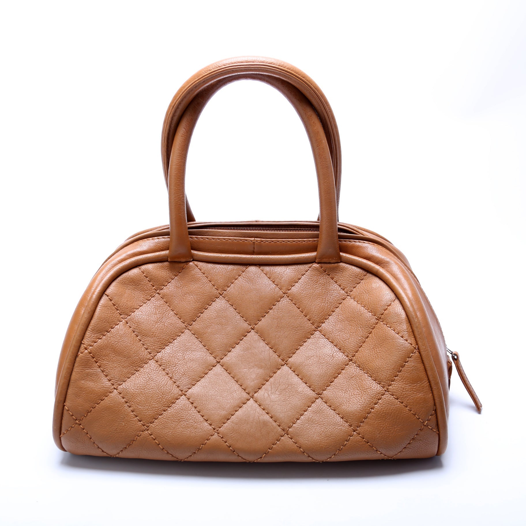 This Chanel Bowling Bag is d 100% . The exterior is in the classic Chanel quilted lambskin.