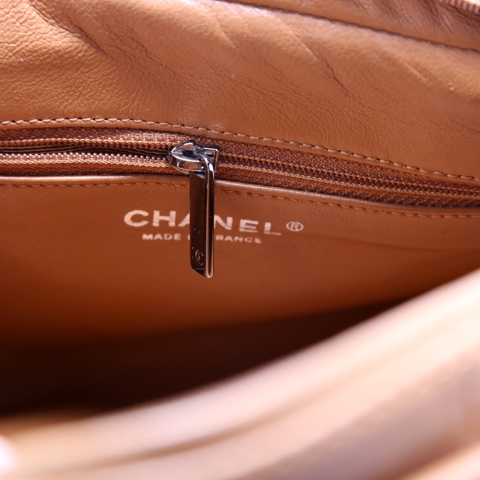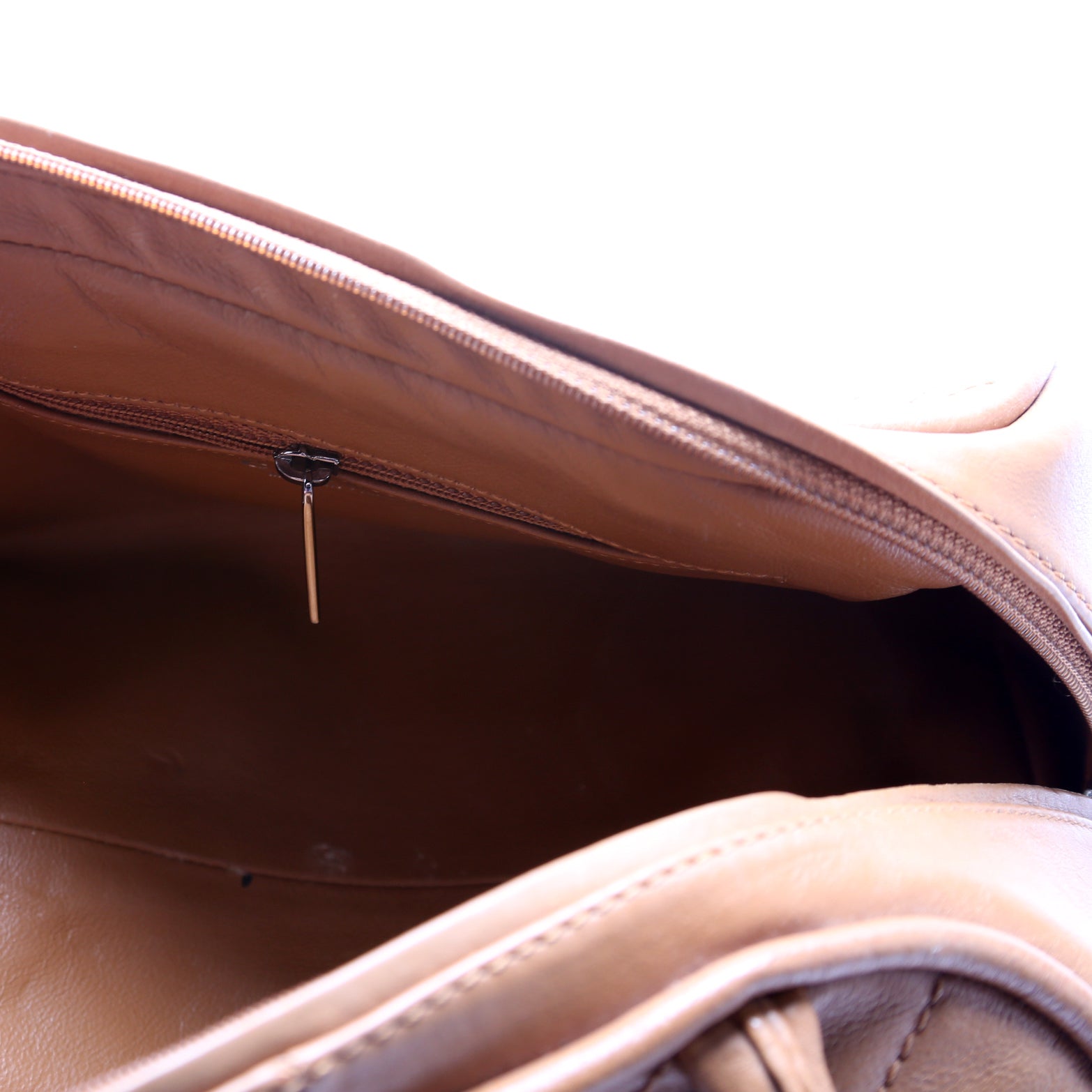 Interior: The interior has minor wear. The interior features one zip closure pocket.