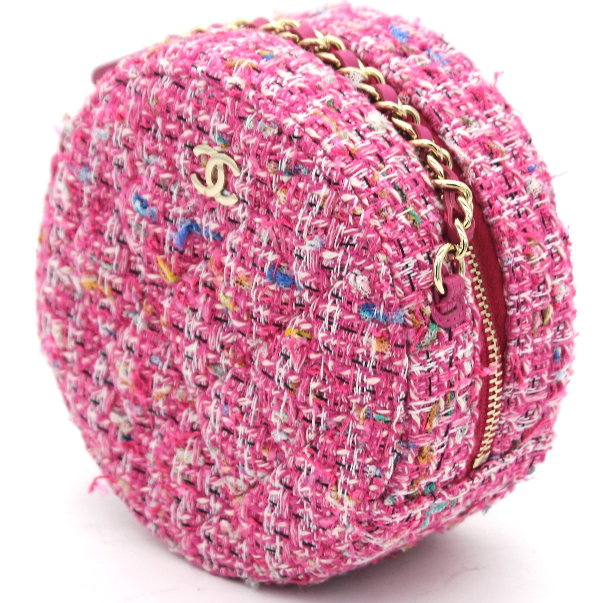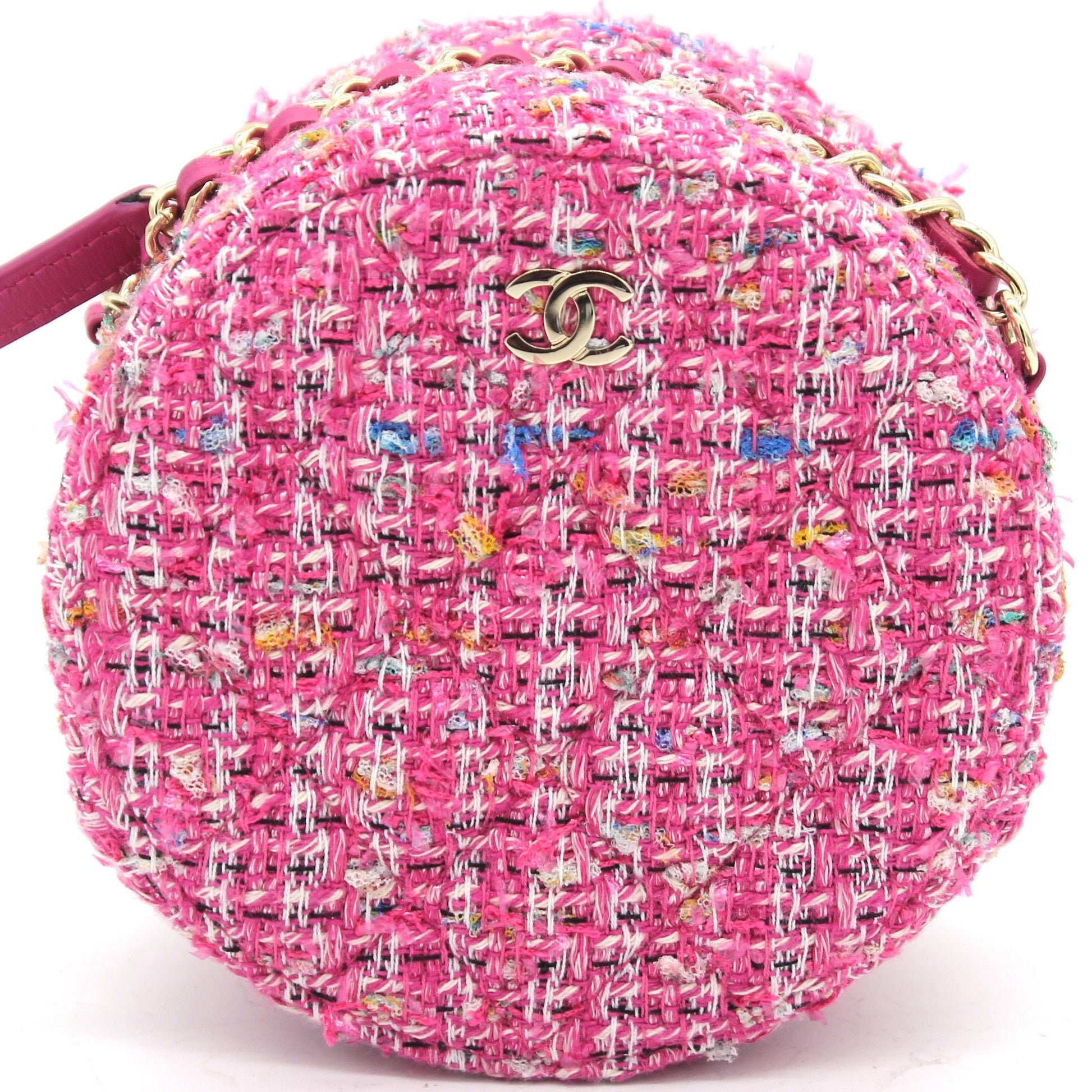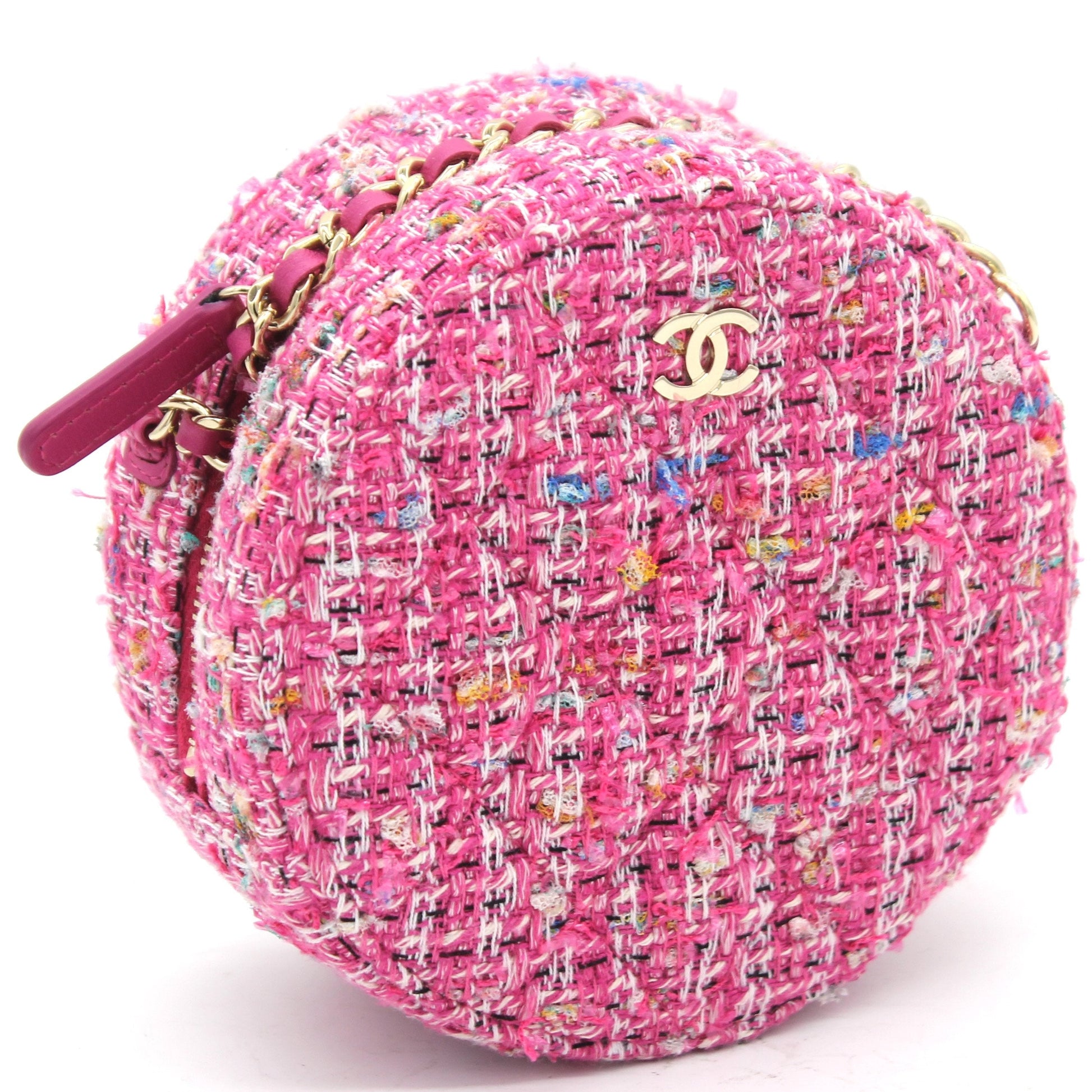 Chanel CC Tweed Fabric Round Clutch With Chain