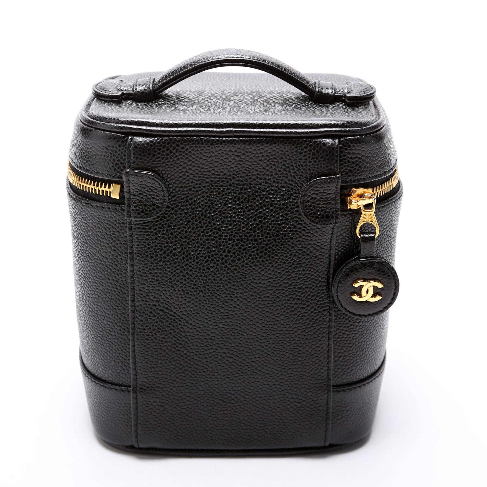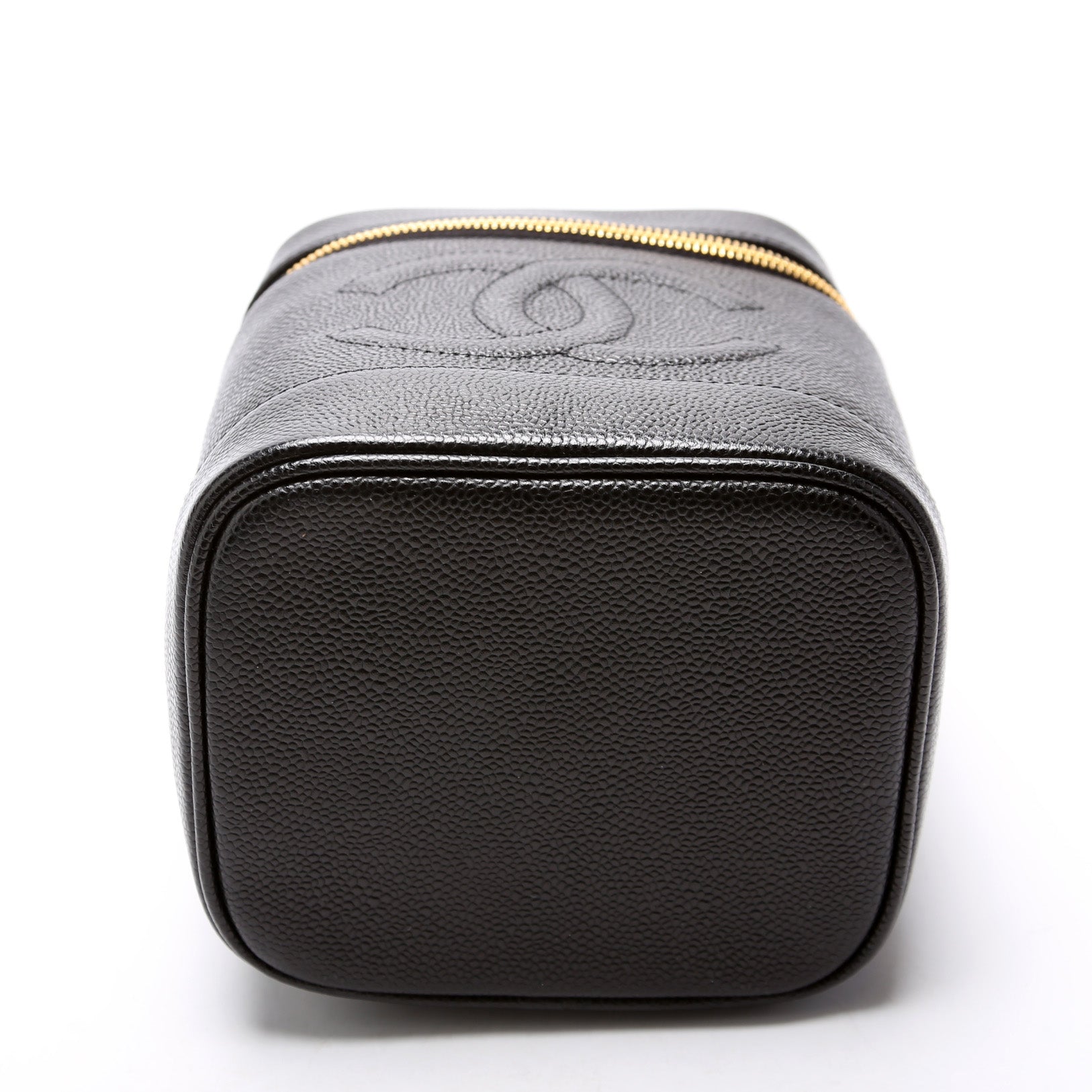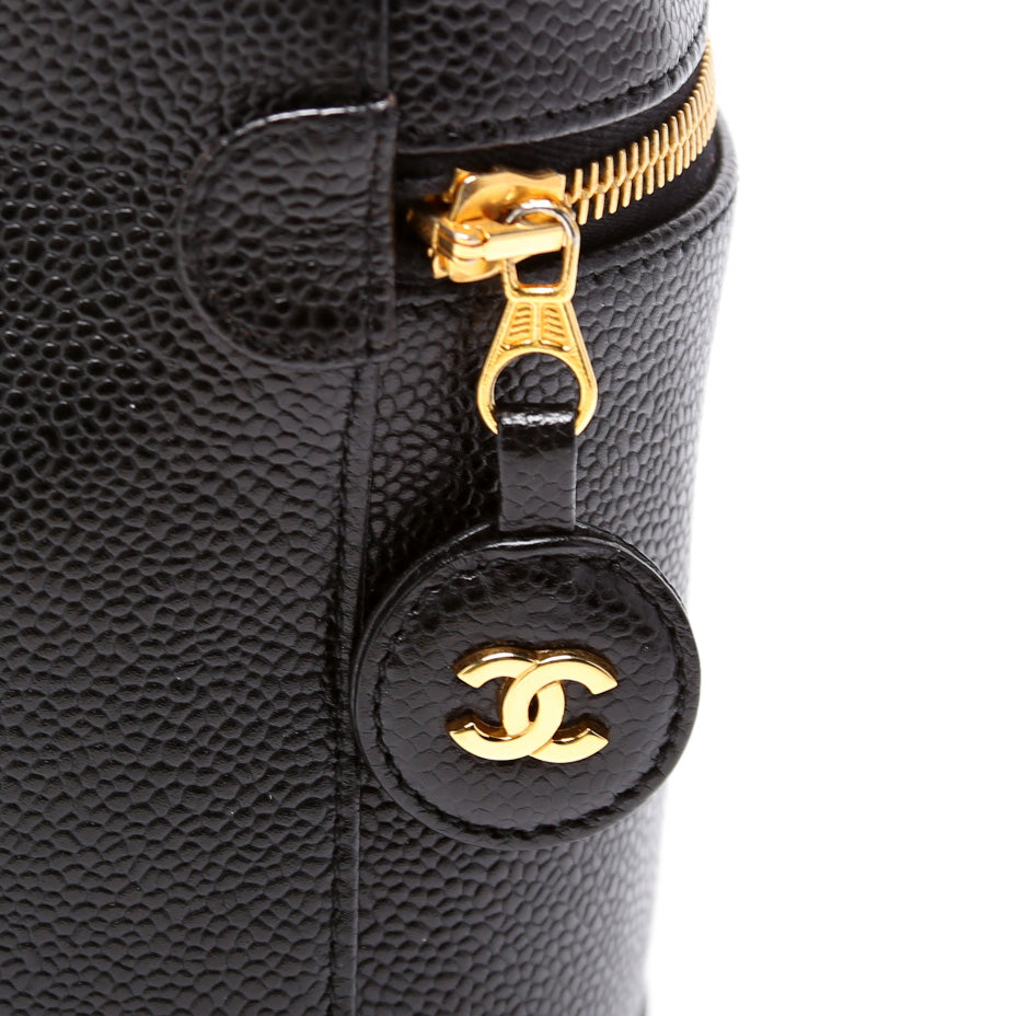 This Chanel CC Vanity Case Smallis eye catching bag. The exterior is in the classic Chanel Caviar leather.