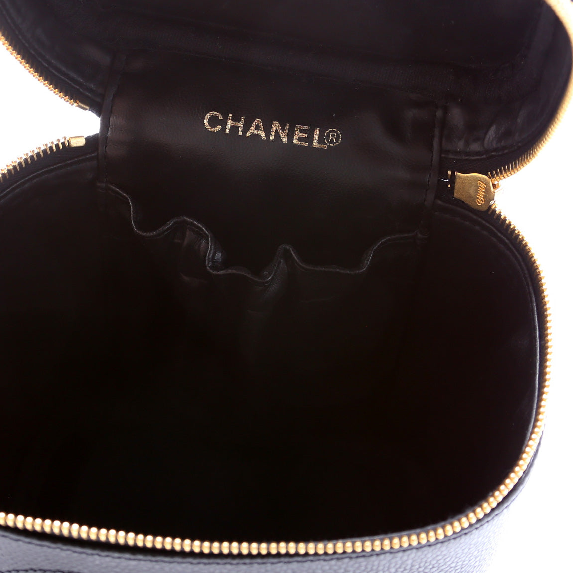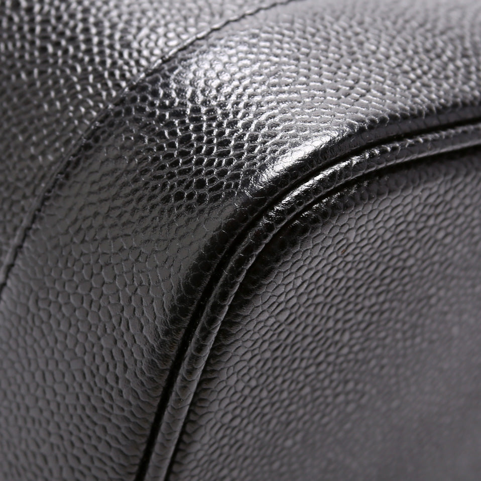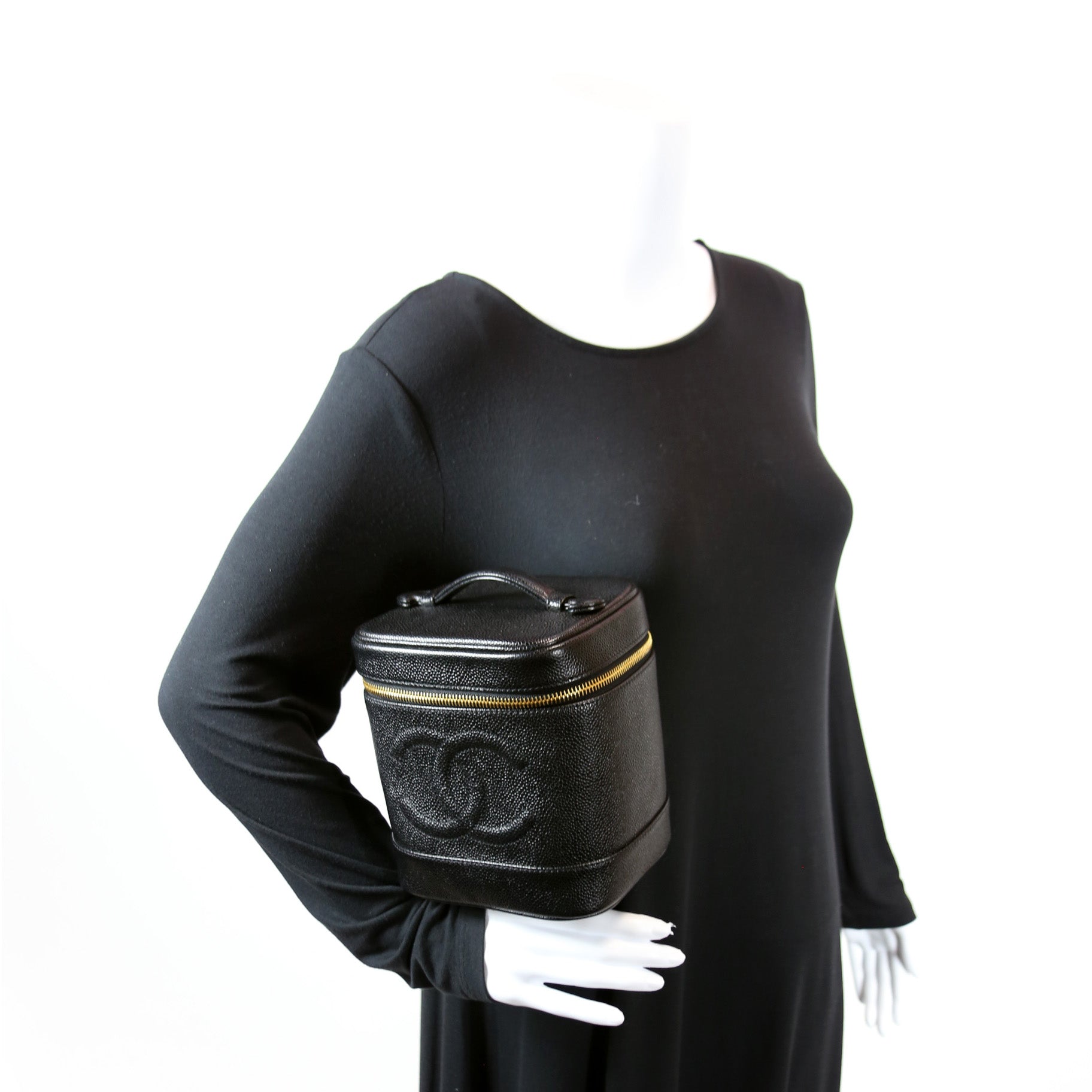 This Chanel CC Vanity Case Smallis eye catching bag. The exterior is in the classic Chanel Caviar leather.