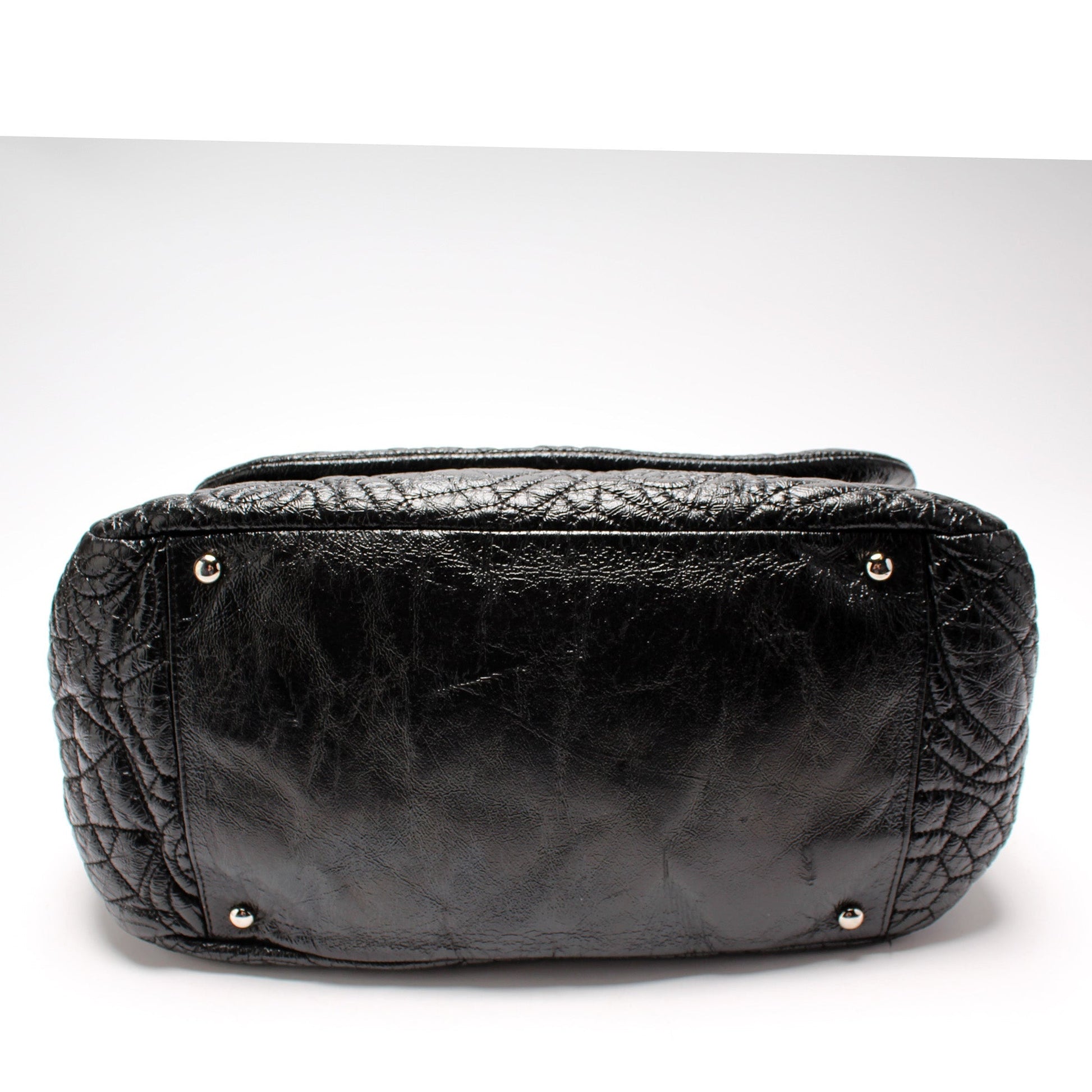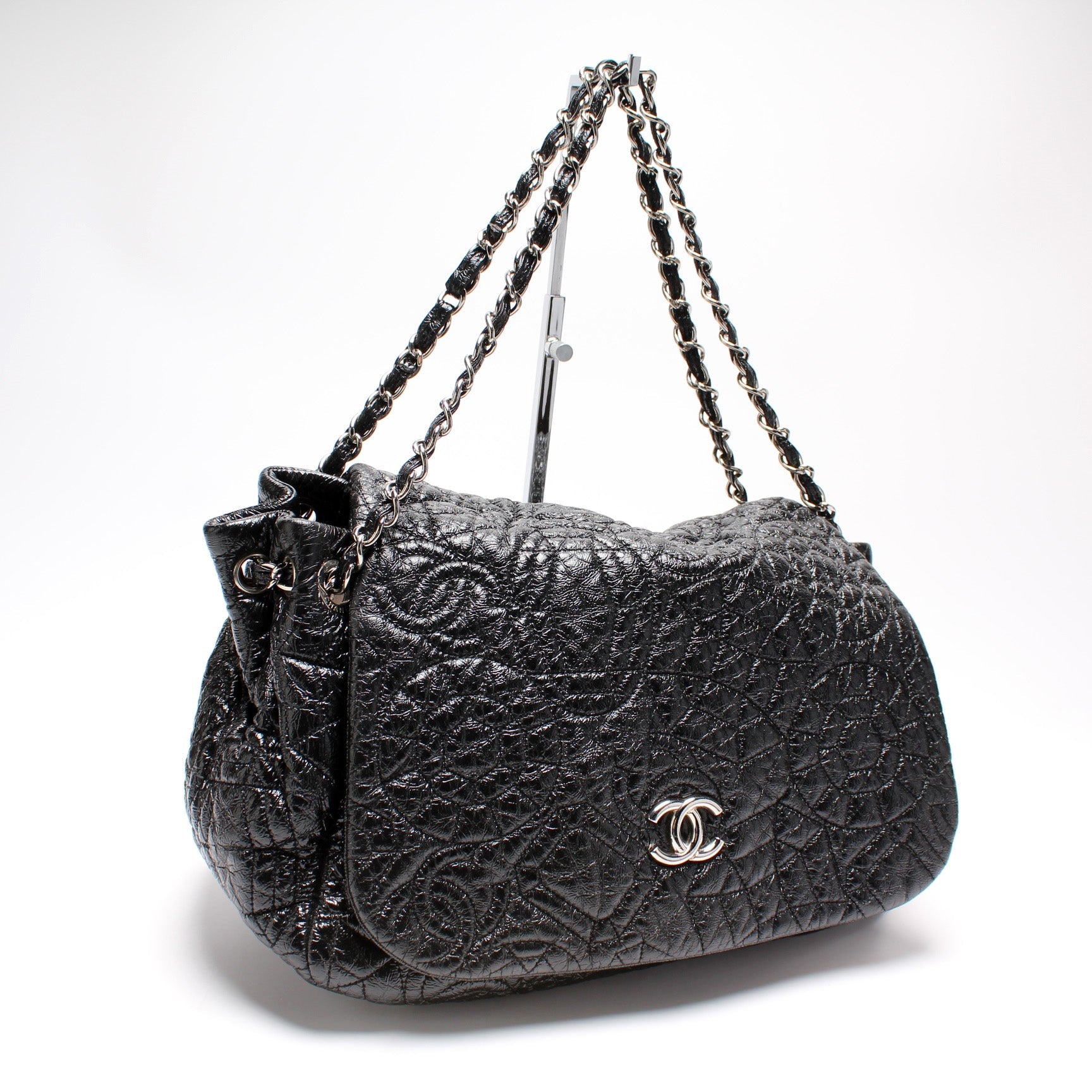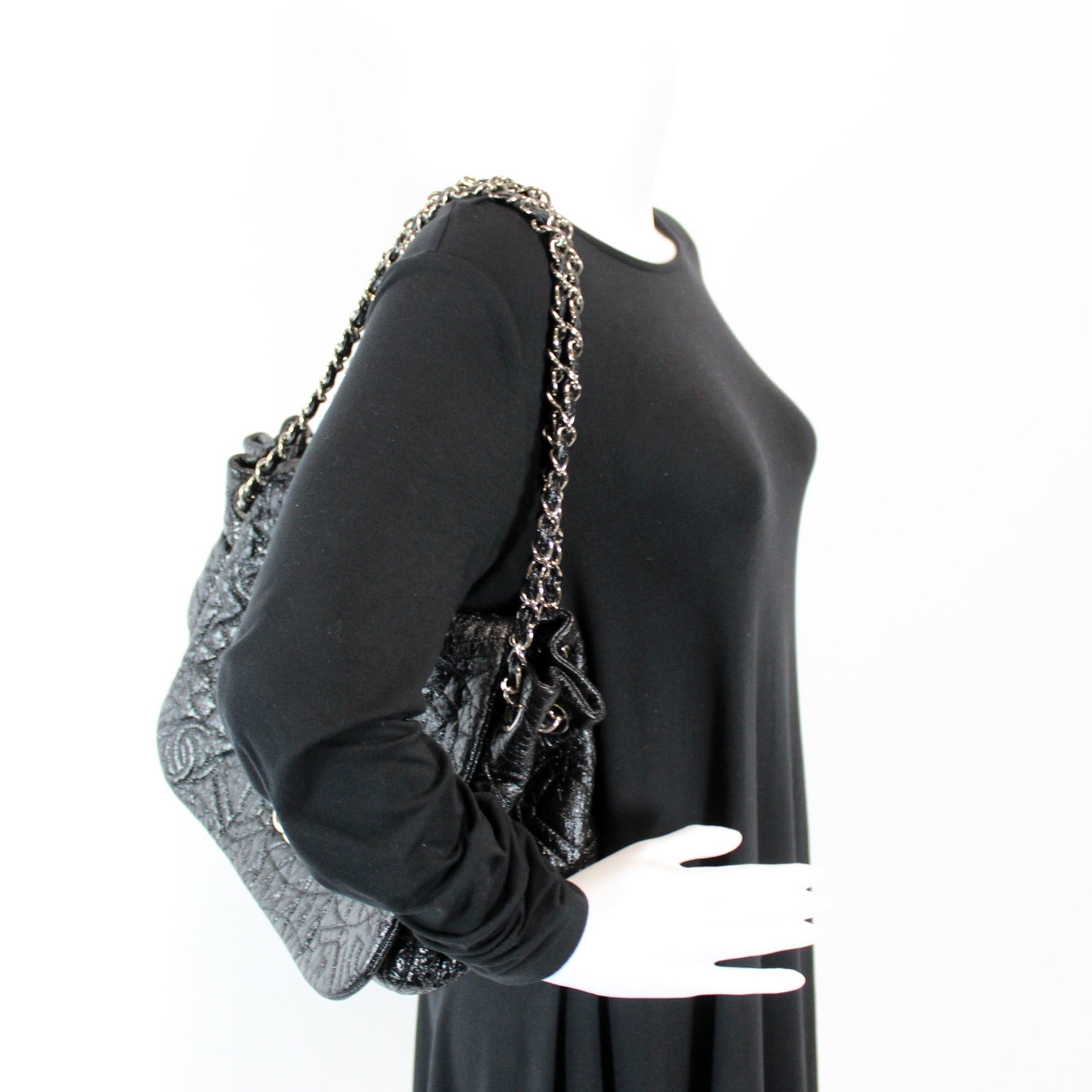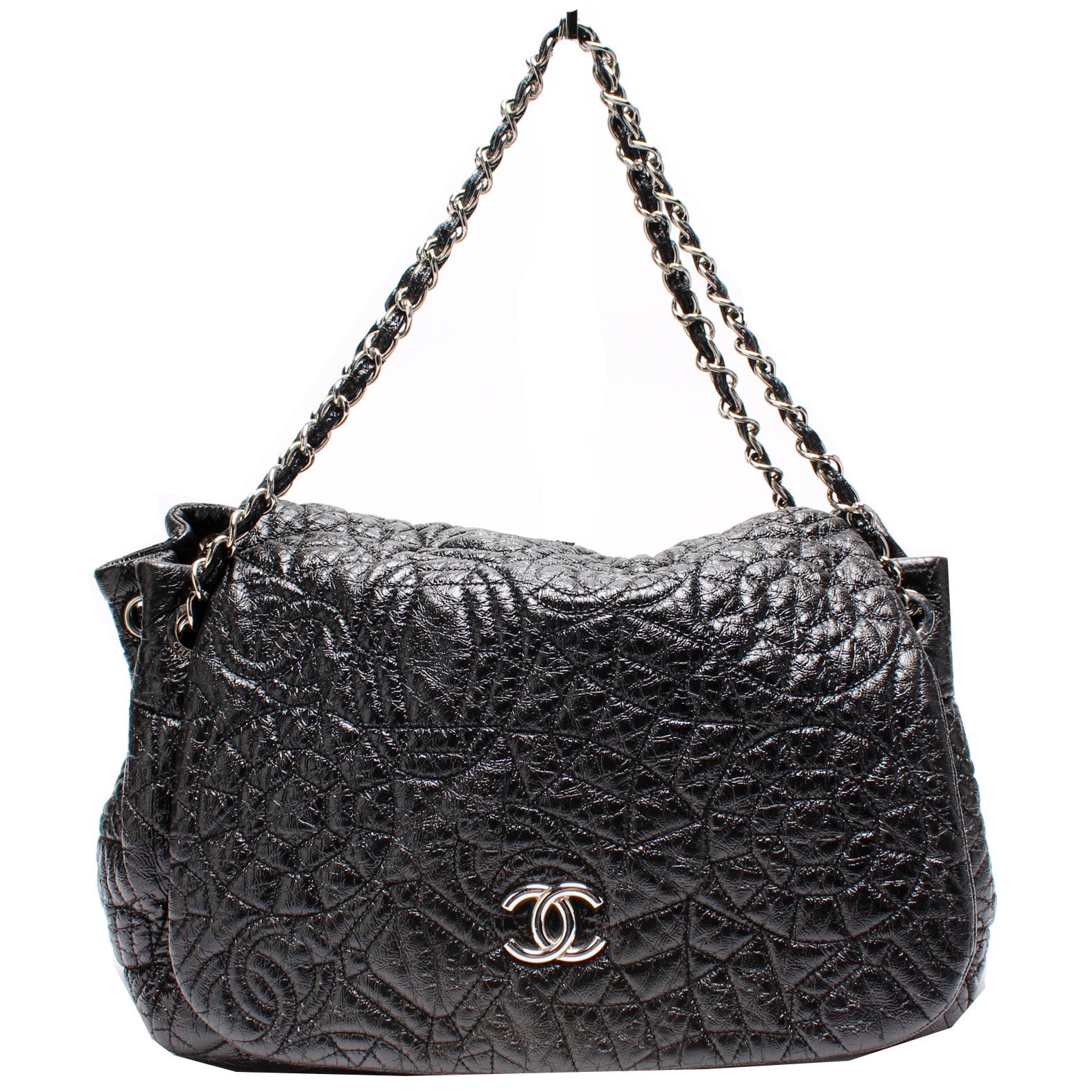 This Chanel CC Vinyl Graphic Edge Accordion Flap Bagis eye catching bag.