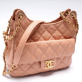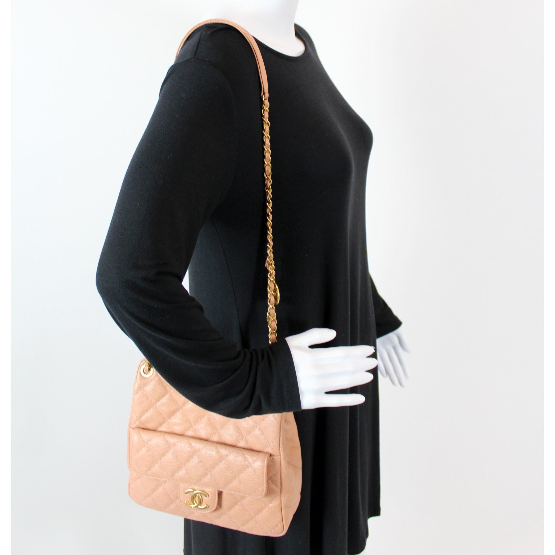 This Chanel CC Wavy Hobo Quilted is d 100% . The exterior is in the classic Chanel Caviar leather.