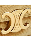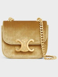 CELINE Mini Chain Claude Velvet Triomphe All-Over Cross Bag Gold