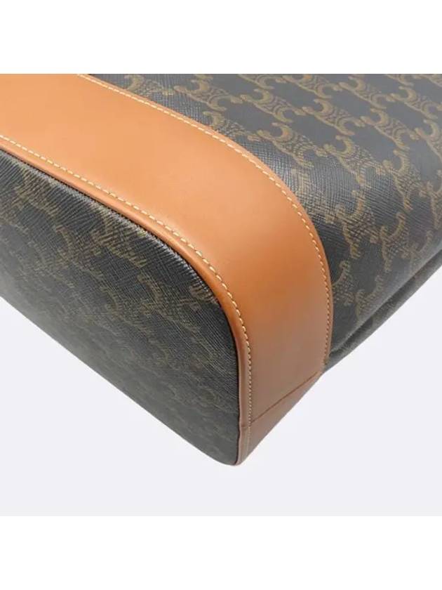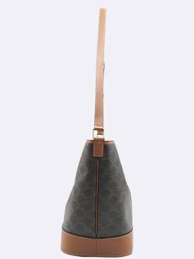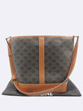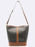 CELINE 191132 Triope Canvas Brown Calfskin Medium Bucket Shoulder Bag