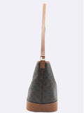 Product Name: 191132 Triope Canvas Brown Calfskin Medium Bucket Shoulder Bag