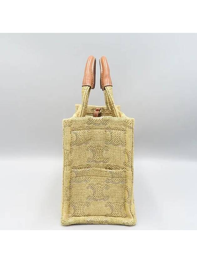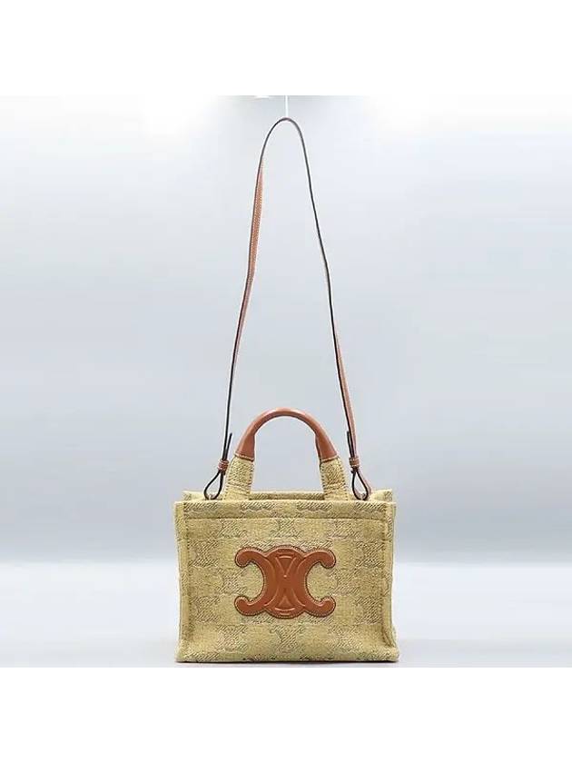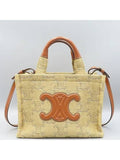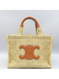 CELINE 199162 Brown Leather Raffia Triope Thais Small Cabas Tote Bag Shoulder Strap 2WAY