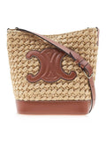 CELINE Cuir Triomphe Small Raffia Bucket Cross Bag Natural