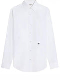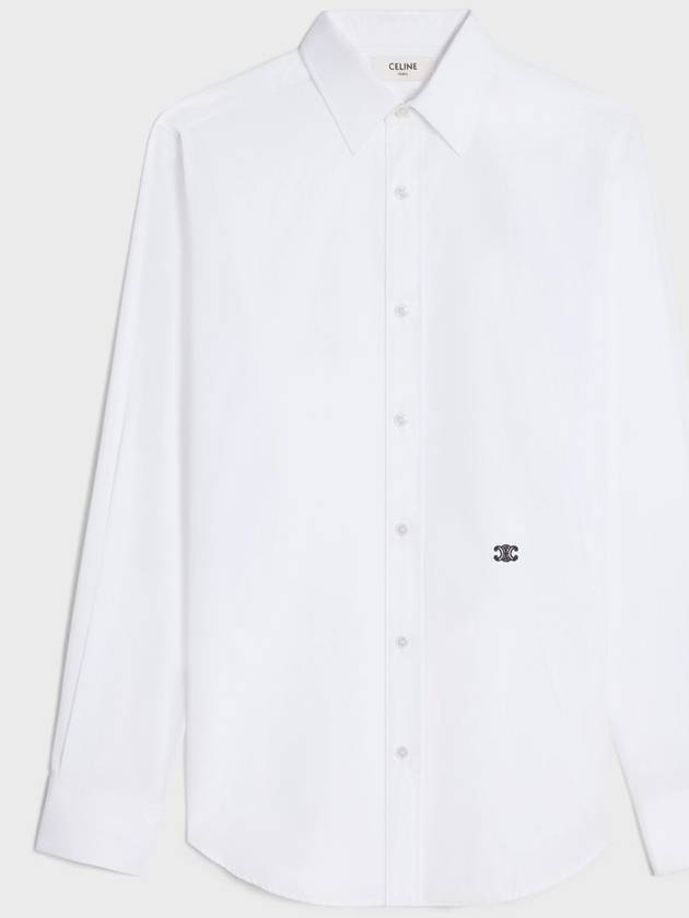 CELINE Triomphe Embroidered Poplin Cotton Long Sleeve Shirt White