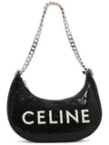 CELINE Ava Chain Medium Sequin Shoulder Bag Black
