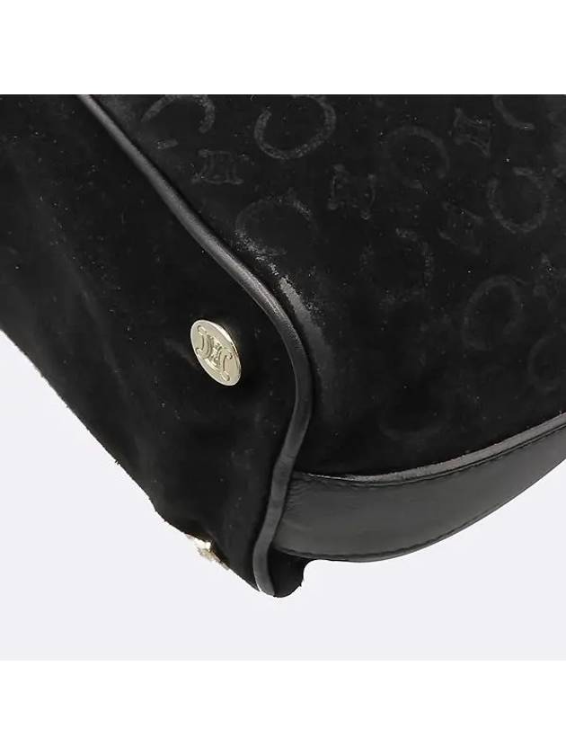 CELINE Black color blazon logo suede shoulder bag