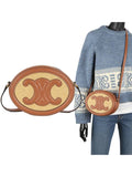 Product Name: Triomphe Textile Calfskin Oval Cross Bag Brown