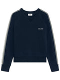 CELINE Embroidered Logo Cotton Fleece Cashmere Sweatshirt Navy