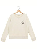 Product Name: Logo Print Cotton Fleece Loose Sweatshirt Cream
