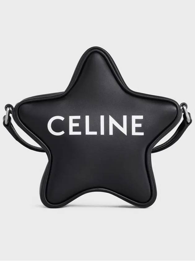 CELINE Logo Print Small Etoile Leather Shoulder Bag Black