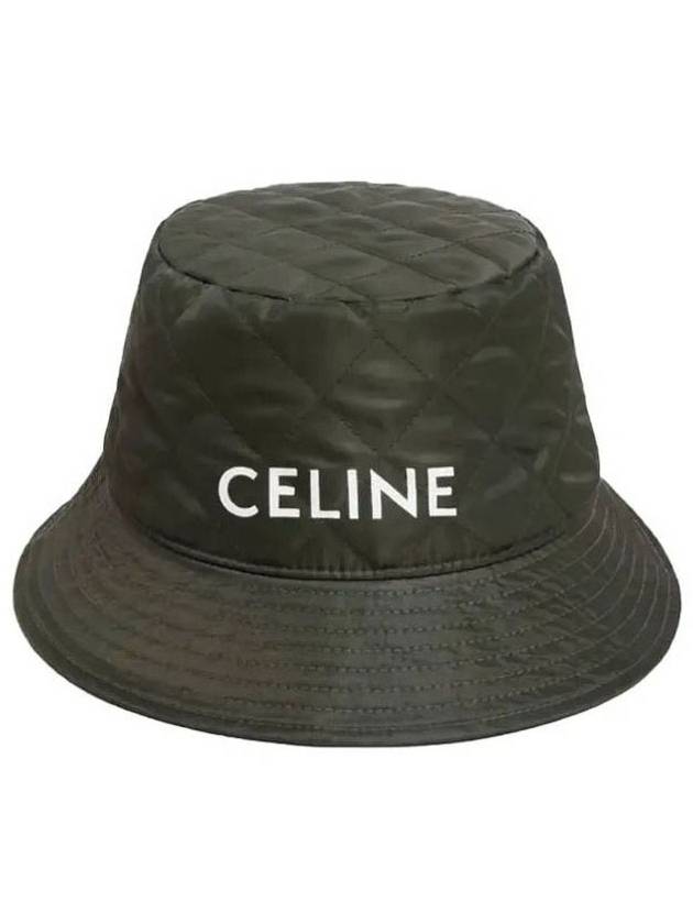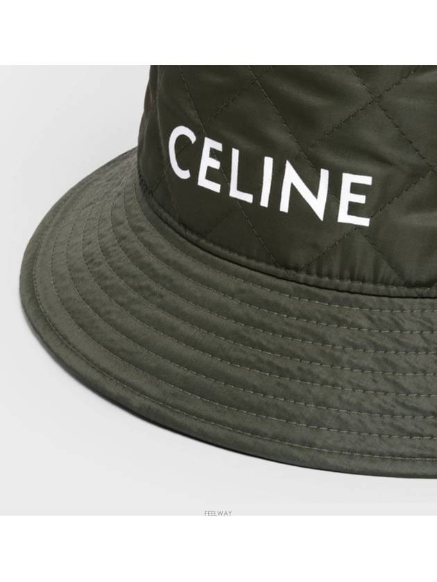 CELINE Logo Quilted Nylon Twill Bucket Hat Forest