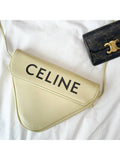 CELINE Logo Leather Triangle Cross Bag Pale Yellow
