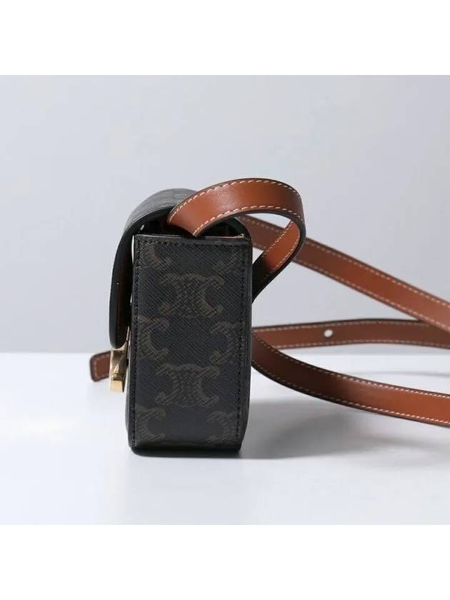 CELINE Mini Triomphe Canvas Calfskin Crossbody Bag Tan