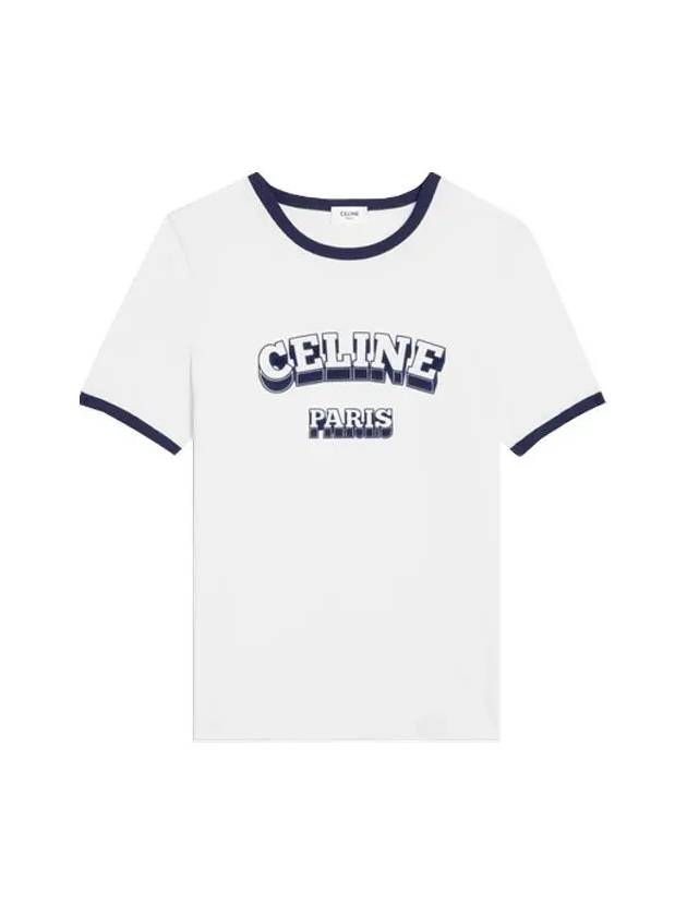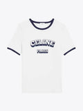 CELINE Paris 70s Logo Cotton Jersey Short Sleeve T shirt White