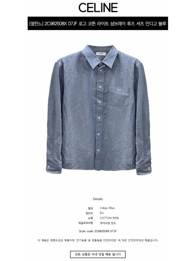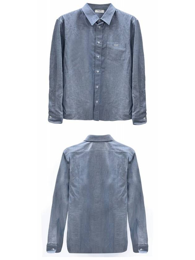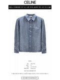 CELINE Rouge Light Chambray Cotton Long Sleeve Shirt Blue
