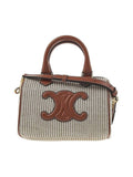 CELINE Small Boston Stripe Textile Calfskin Cross Bag Beige