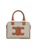 Product Name: Small Boston Stripe Textile Calfskin Cross Bag Beige
