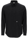 CELINE Triomphe Embroidered Inverted Collar Long Sleeve Shirt Black