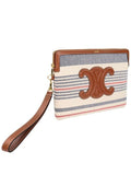 CELINE Strap Striped Textile Calfskin Pouch Bag