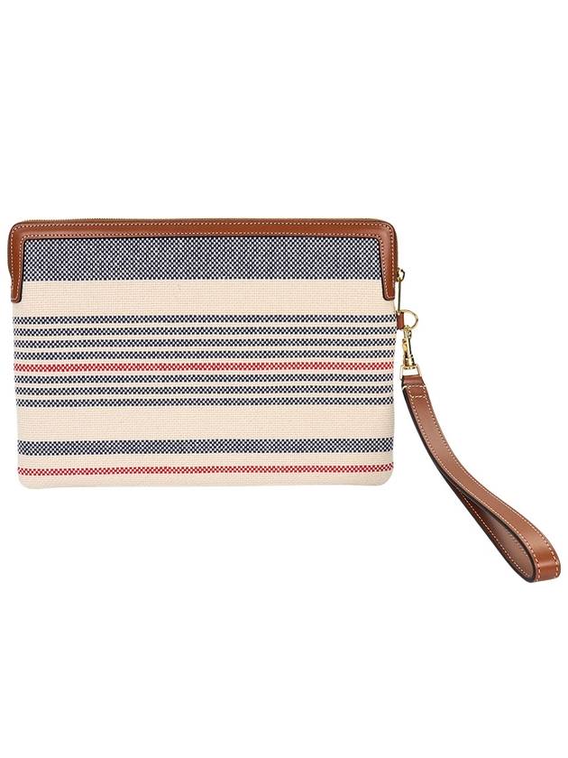 Product Name: Strap Striped Textile Calfskin Pouch Bag