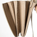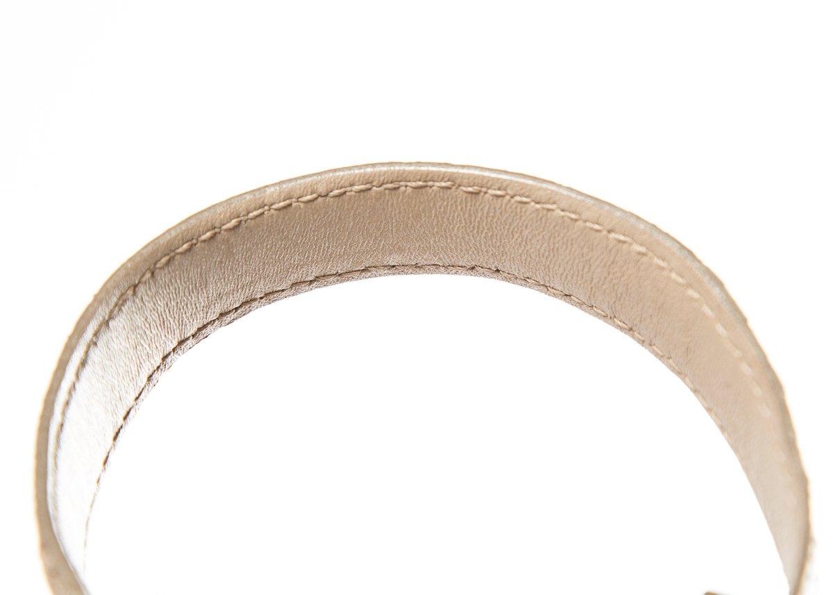 This item has been previously worn and contains some signs of wear including light peeling on the leather near the closure on the front flap with micro-scratching and tarnish on hardware. Good previously used condition consistent with light gentle use.