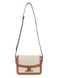 CELINE Teen Triomphe Textile Calfskin Shoulder Bag Natural Tan