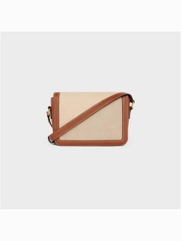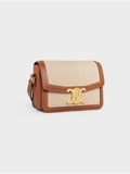 CELINE Teen Triomphe Textile Calfskin Shoulder Bag Natural Tan