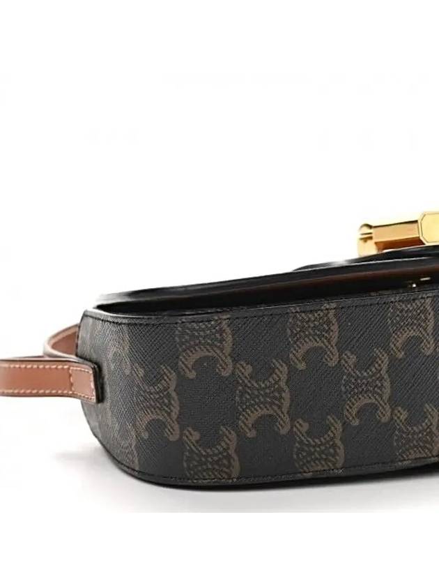 CELINE Triomphe Canvas Calfskin Tabou Strap Clutch Bag Tan