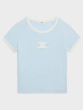 CELINE Triomphe Cotton Jersey Short Sleeve T-Shirt Pastel Blue