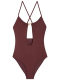 CELINE Triomphe Matte Jersey One-Piece Swimsuit Prune