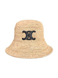 CELINE Triomphe Raffia Bucket Hat Natural Black
