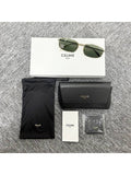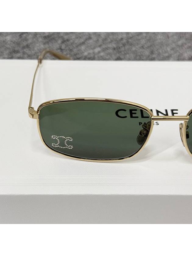 CELINE Triomphe Rhinestone Rectangular Sunglasses Gold Green