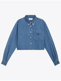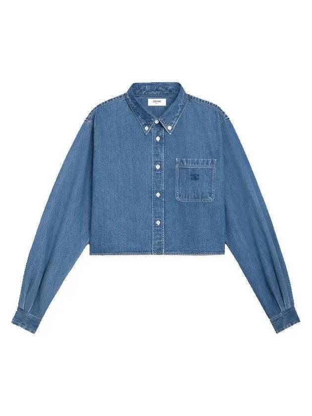 CELINE Union Ocean Wash Denim Crop Shirt Blue