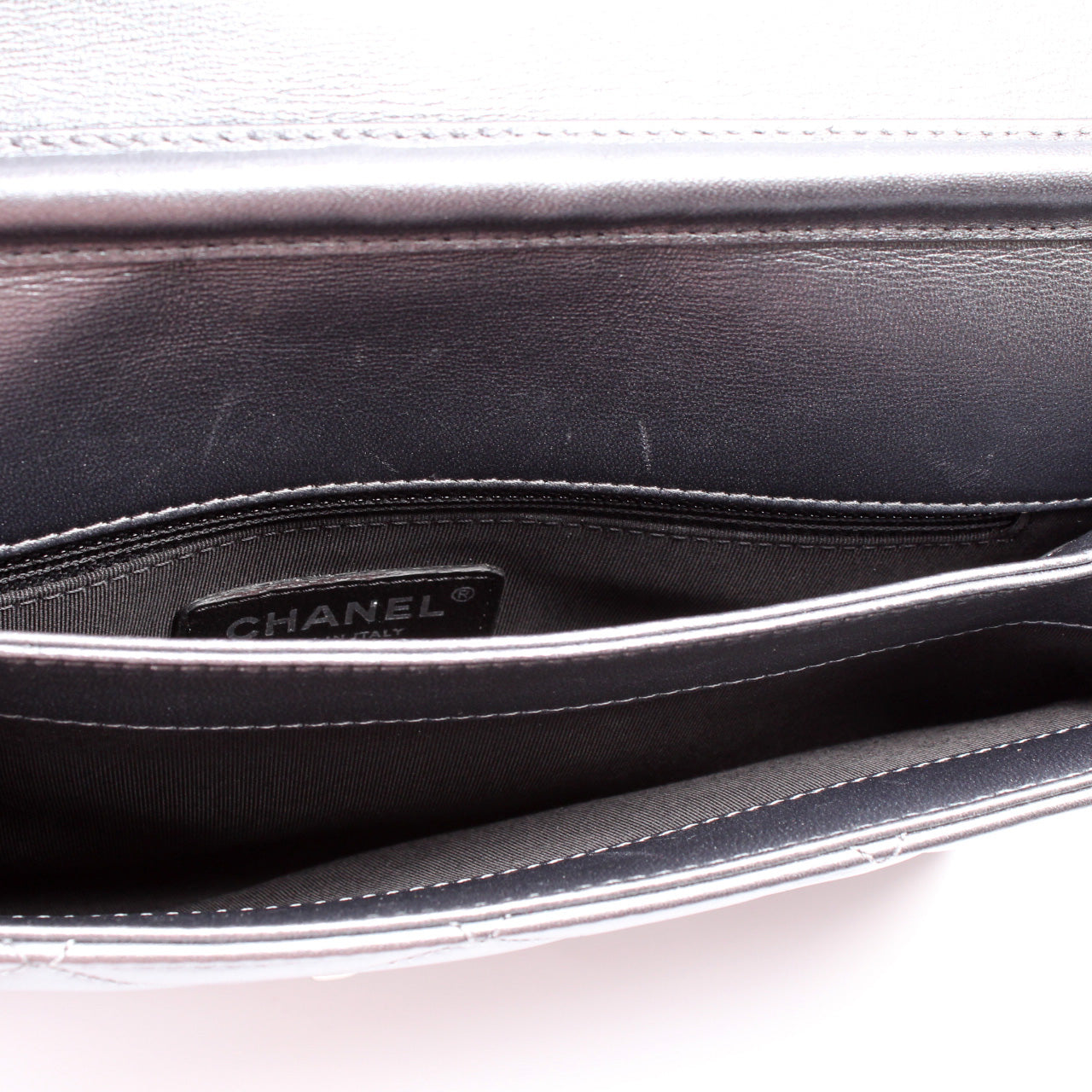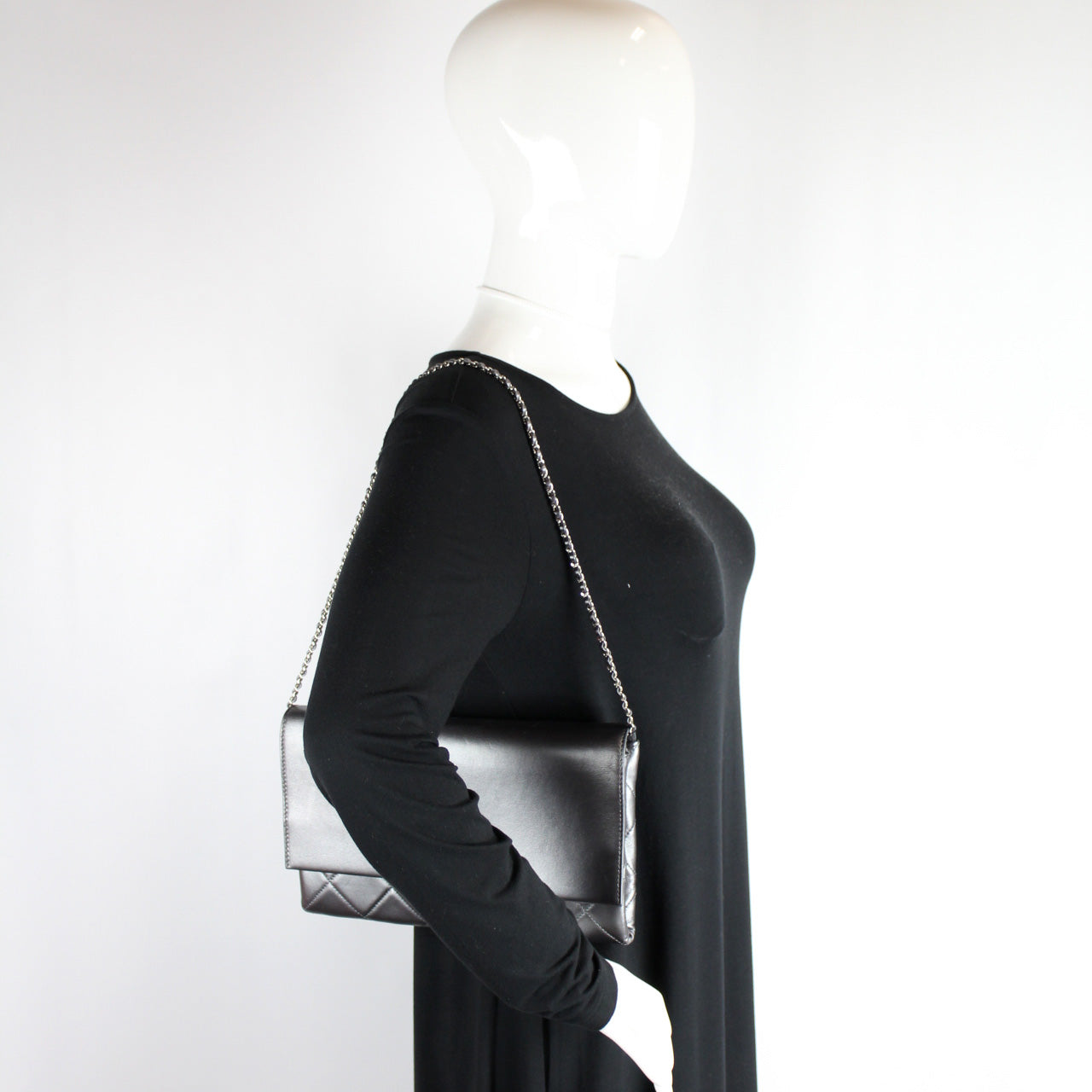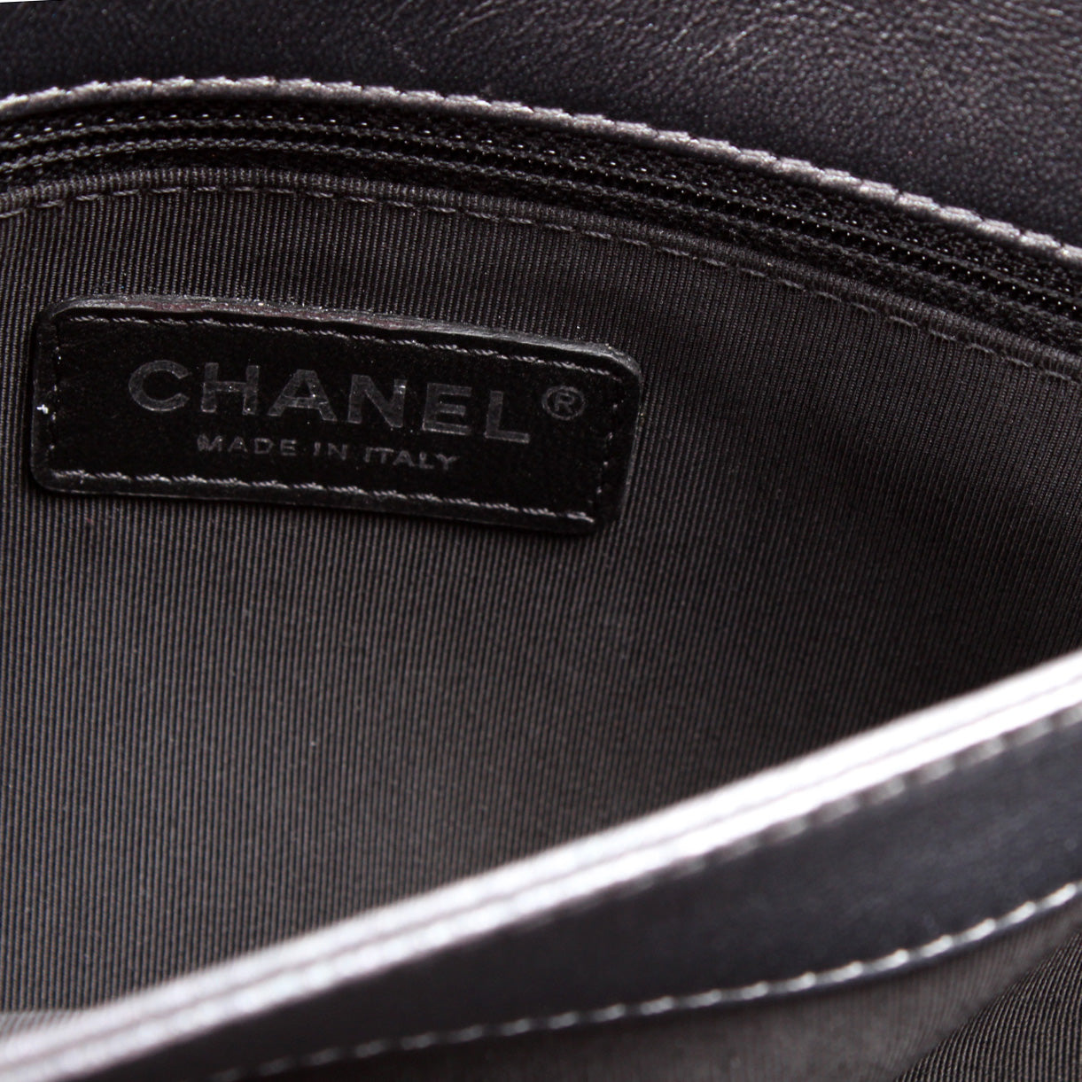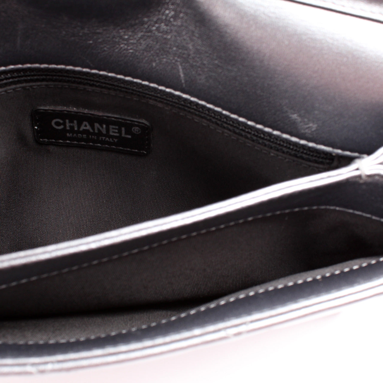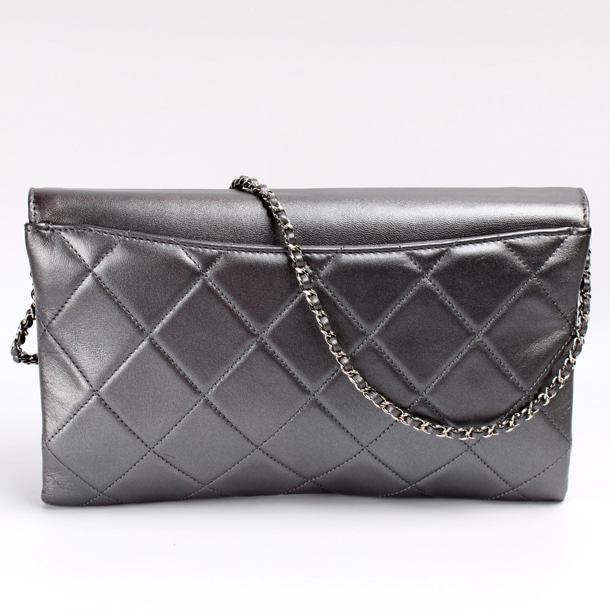 This Chanel Chain Clutch Retro Label is guaranteed 100% authentic. The exterior is in the classic Chanel Lambskin leather.
