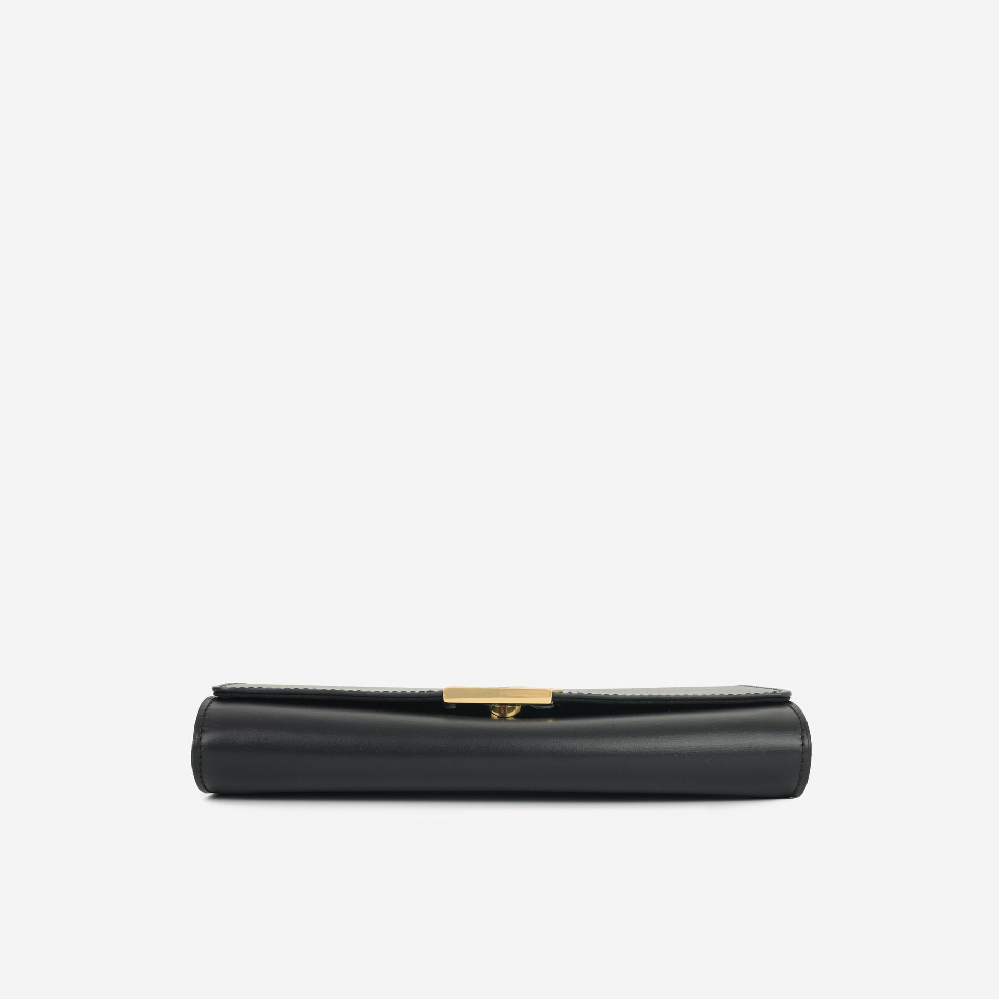 Crafted in smooth black calfskin, this sophisticated piece is the perfect companion for any evening event. Designed to hold all your essentials, it seamlessly blends functionality with timeless elegance. Wear it on its gleaming gold chain for a statement shoulder bag look, or carry it as a chic clutch for understated glamour.