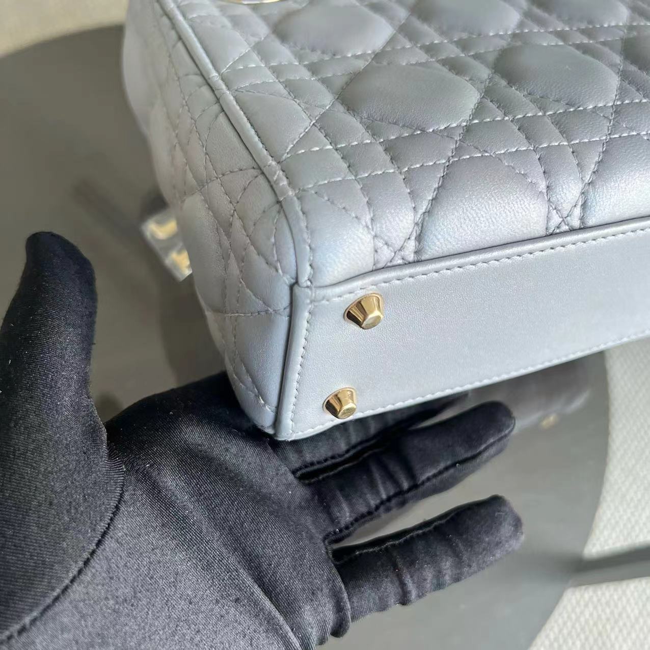 *Chain Strap* Lady Mini Cannage Lambskin Light Grey Gray Golden Hardware