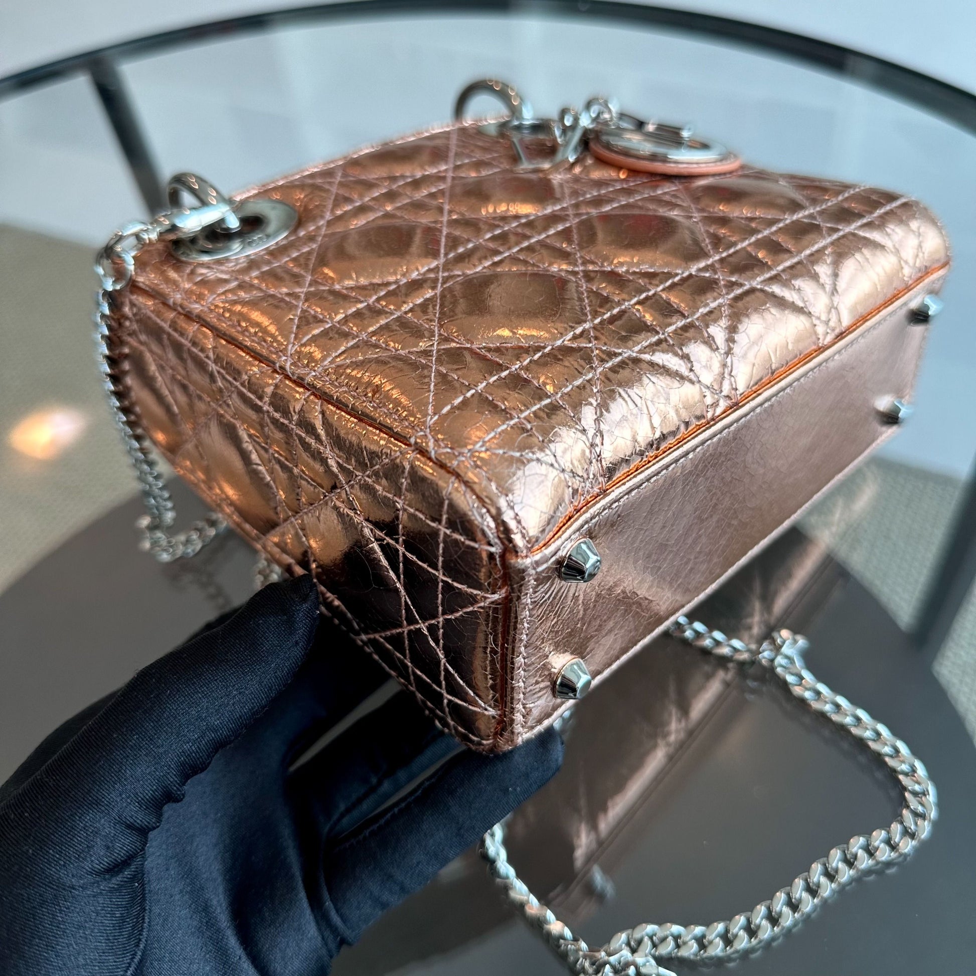 *Chain Strap* Lady Mini Metallic Cannage Rose Gold SHW
