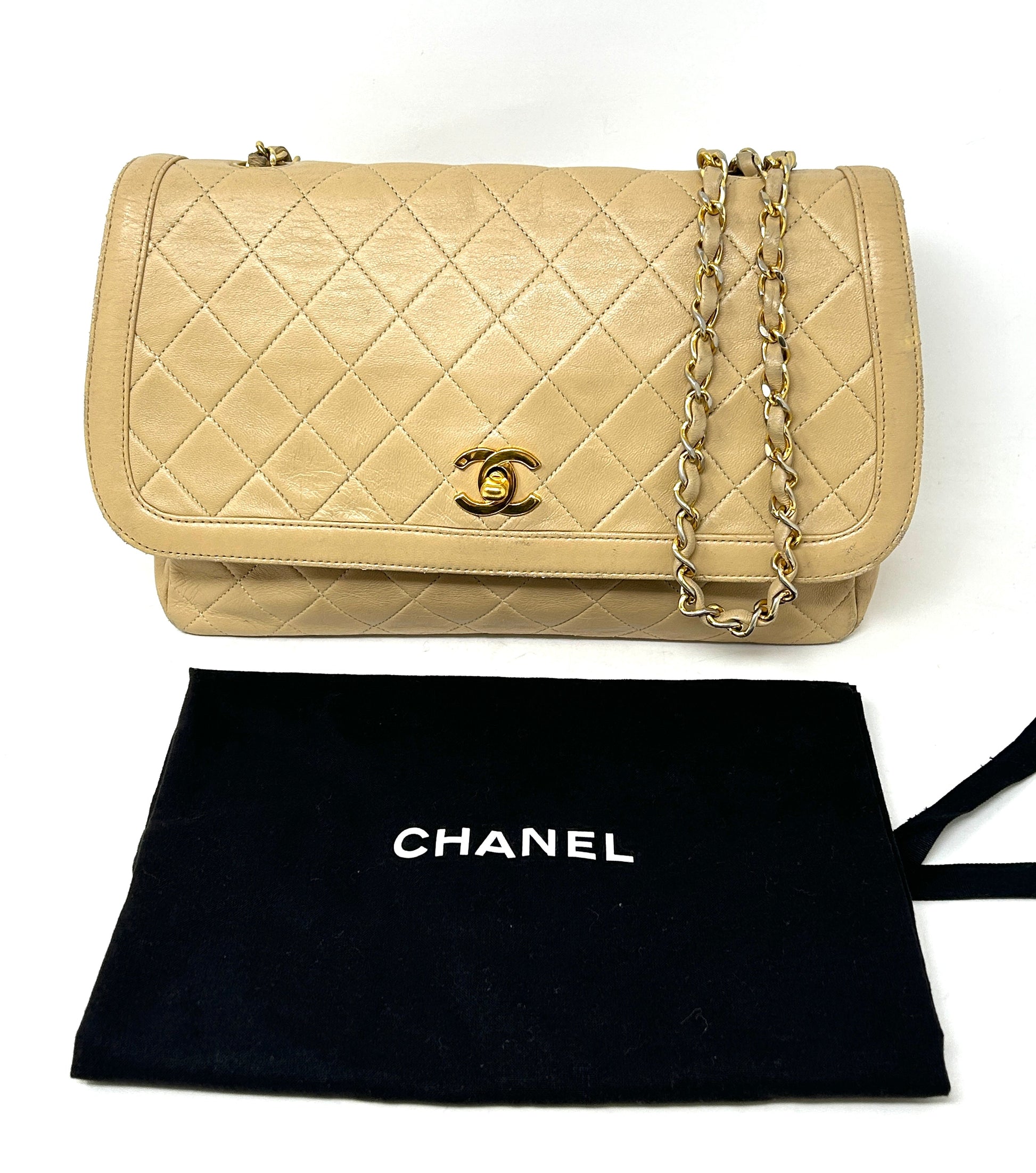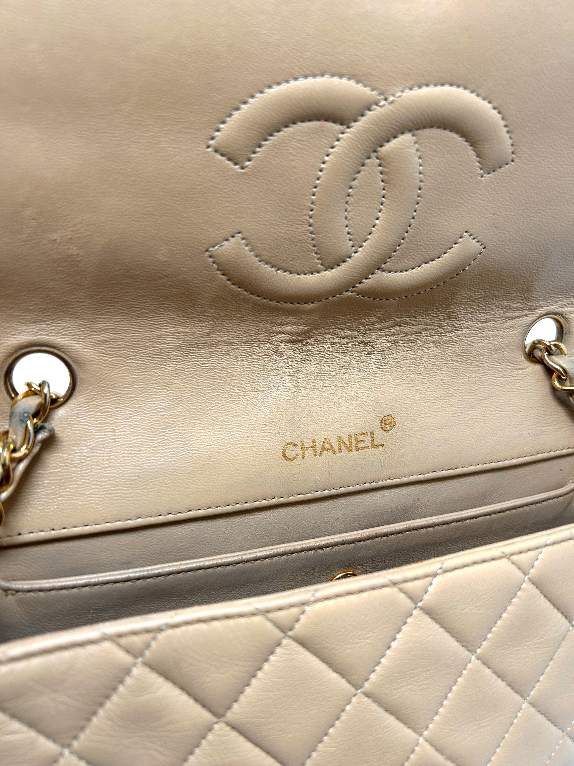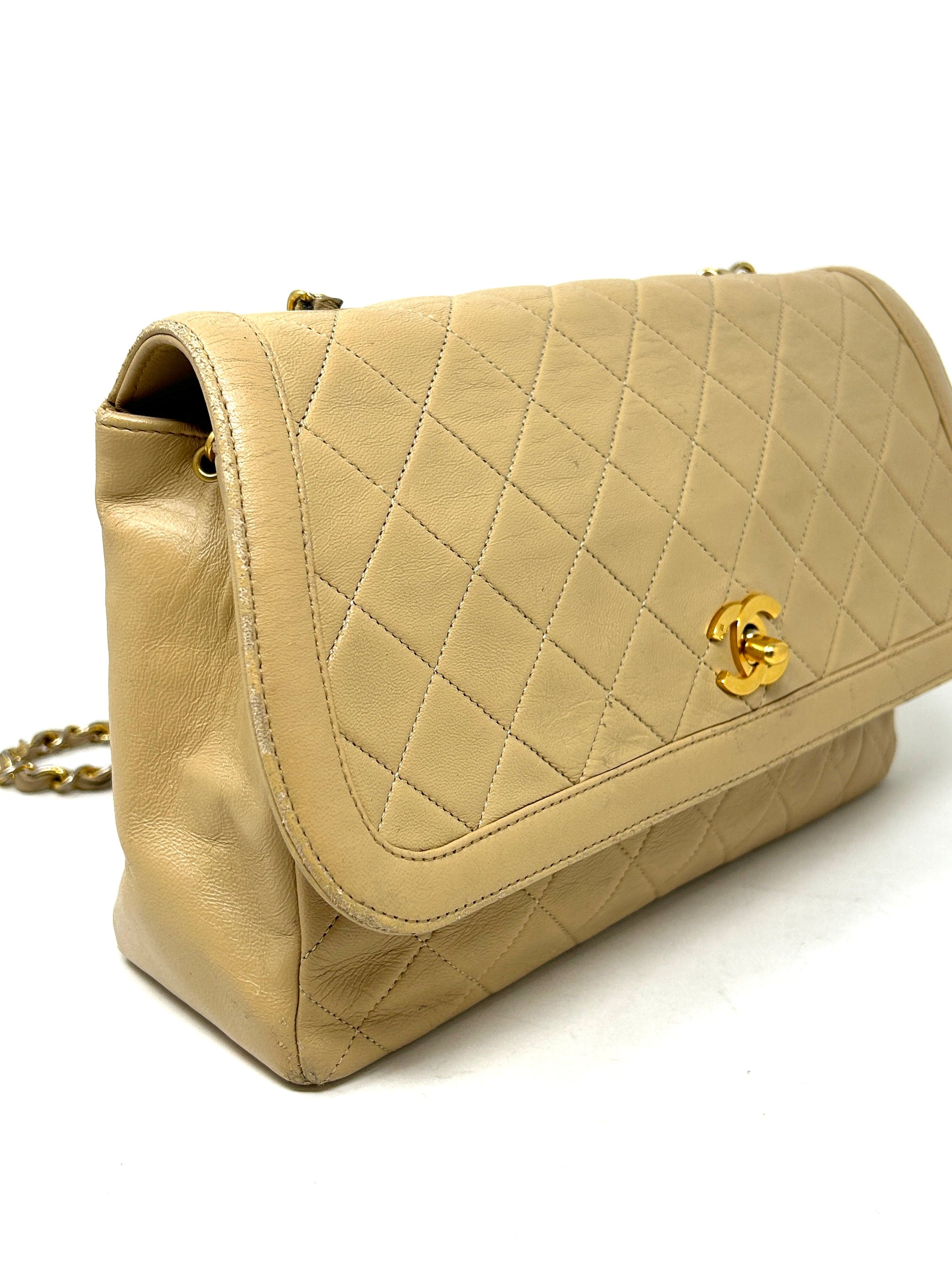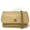 Chanel Beige Quilted Leather CC Logo Flap Shoulder Bag 24K Gold Plated - Preloved