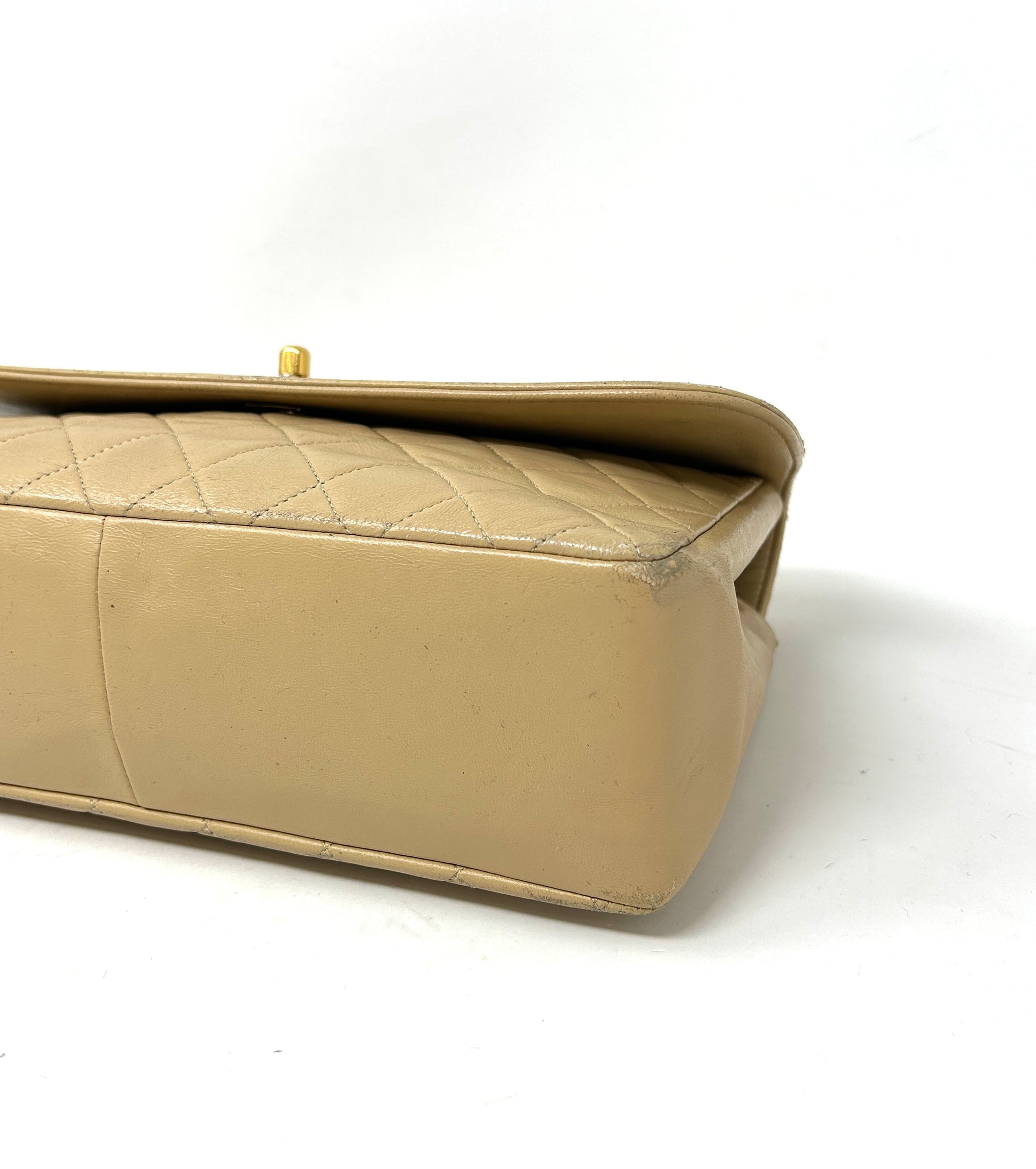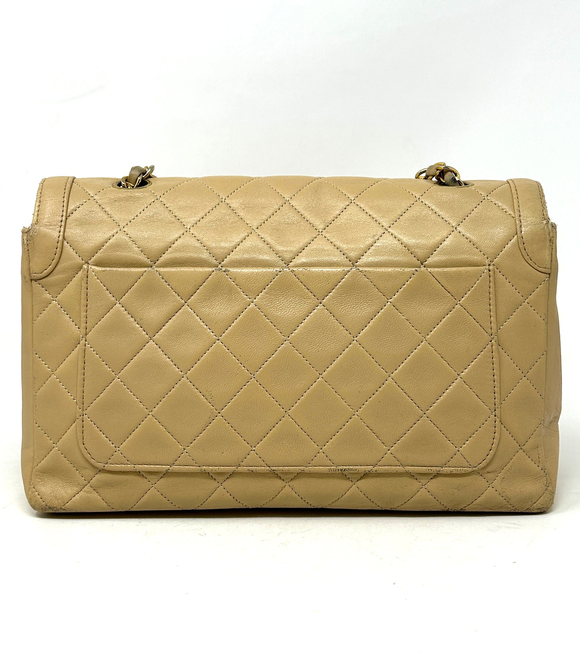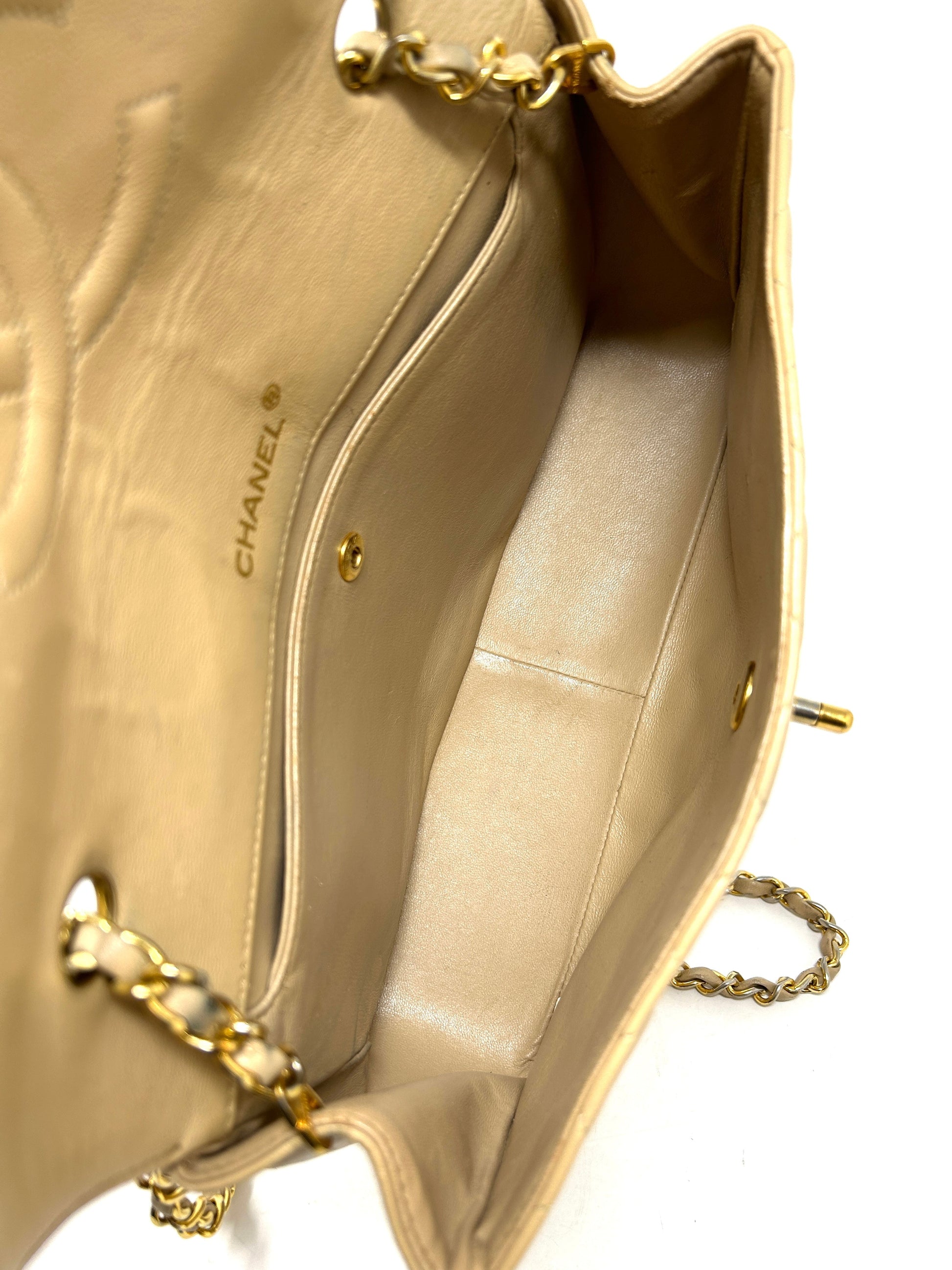 Chanel Beige Quilted Leather CC Logo Flap Shoulder Bag 24K Gold Plated - Preloved