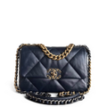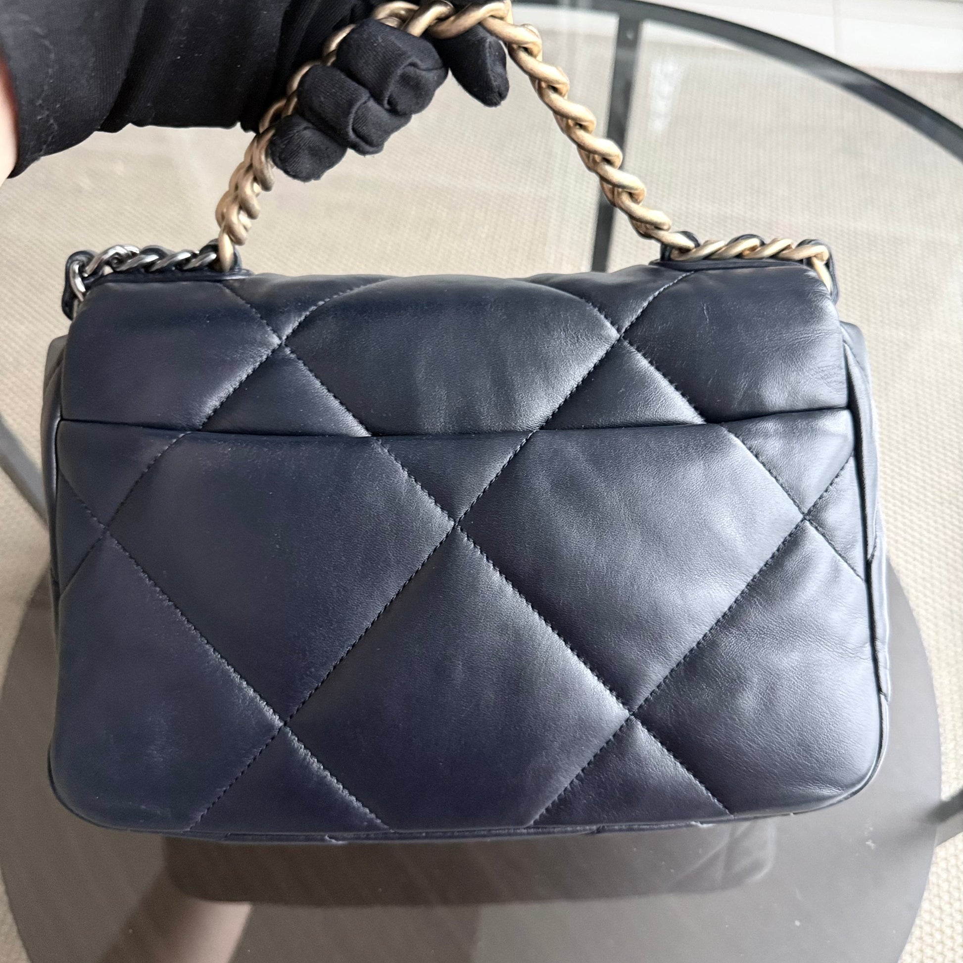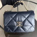 Chanel 19 Bag Small - Quilted Goatskin Dark Navy Blue Two-Tone Gold Hardware Series 31