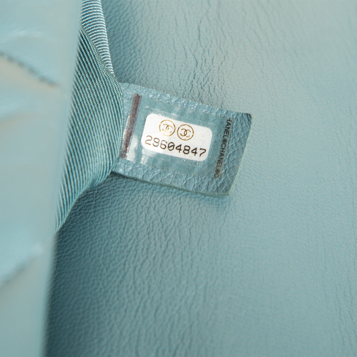- Pastel blue lambskin leather