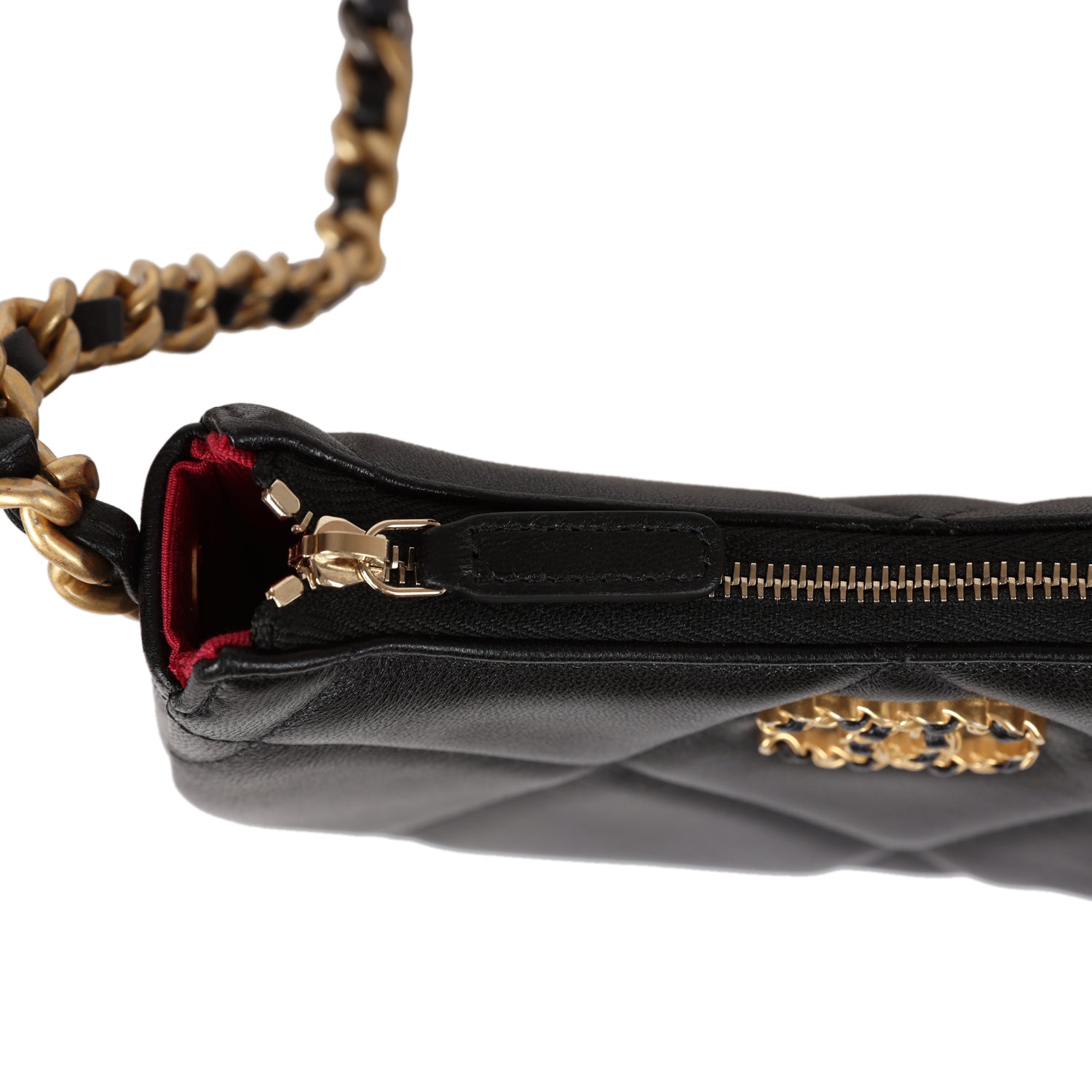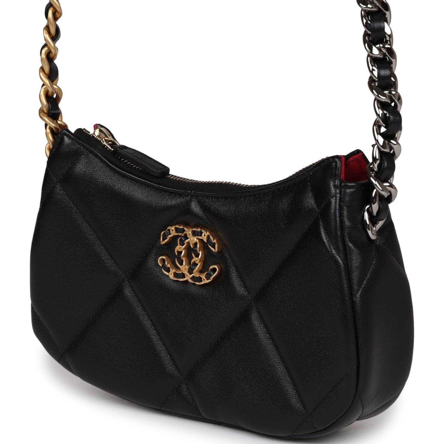 Chanel 19 Hobo Chain Clutch Bag Black Calfskin Mixed Metal Hardware