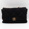 Chanel's 19 is a modern shoulder bag in maxi size. This convenient design is made with tweed in black and navy, soft design and over sized diamond quilted, with double chain design in gold, silver and ruthenium-toned metals. The bag can be carried by the large chain handle, or in to different styles from shoulder to crossbody carrying. On the front has a CC gold-tone logo, inside is spacious for daily use as the large size easily fits all your daily items. Retail price €7750.